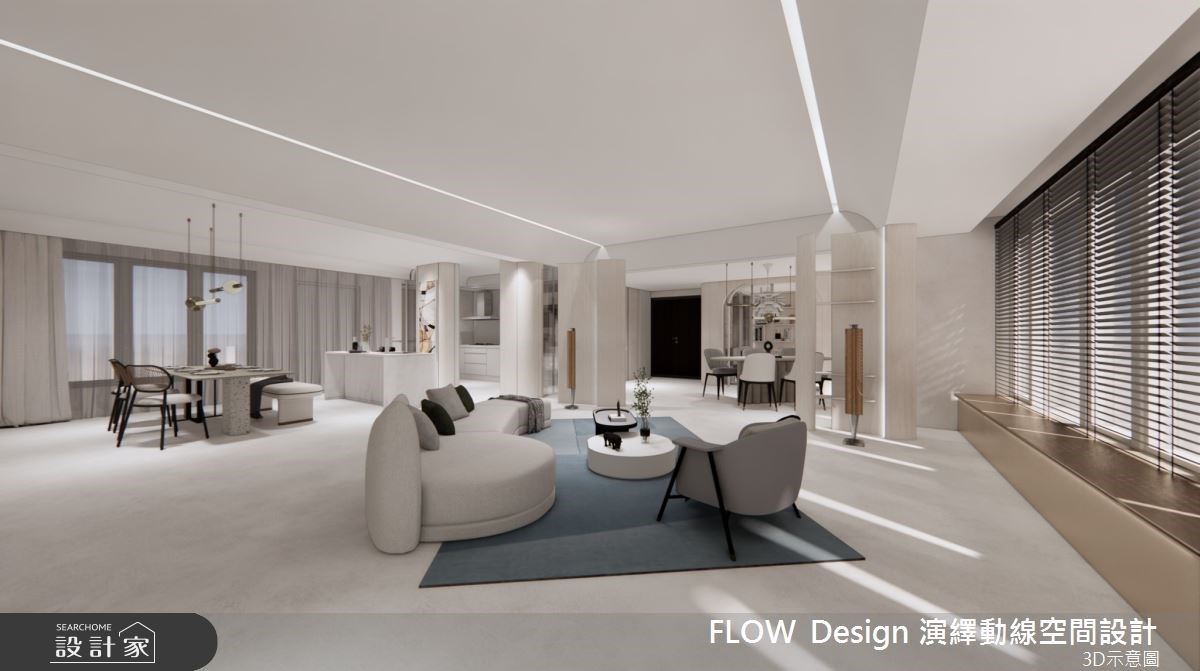 75坪简约风居家的屋主是一名医师,在忙碌的日常生活里,他喜欢旅游、亲近大自然,也蒐藏不少心爱的艺术作品。设计团队把握景观优势,创造开阔的场域尺度,让各空间都能享受广阔视野的陪伴,更挹注大篇幅的纯白色调,搭衬弧型线条的串连与柔化,再摆上富含艺