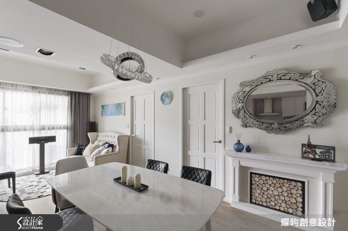 在不动隔断的前提下,设计师将132平方米的长型二手房予以翻新,改善地面不平与采光不足等问题,藉由建材特性与引光手法,替原先阴暗的餐厅注入光亮。并以乡村风格做为规划重点,描画温暖的生活环境。【壁炉电视墙,空间更温馨】空间以白色作主调,搭配大面