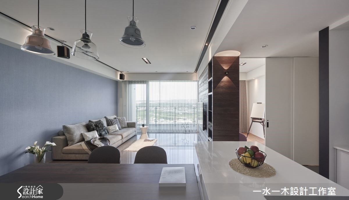 屋主相当自豪位于19楼高的居家景色,但是要如何在装修中适切展现引以为傲的自然采光呢?设计师巧用机动性墙面,打造零隔阂空间,让屋主可以随心所欲、同时拥有私密性与光透感! 【隐藏门片设计,保有机动性】漆上马卡龙色的沙发背墙搭配简约大方的家具,让