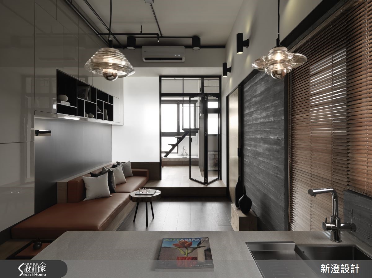 设计师援引"微型住宅"概念套用于43平方米小户型,利用跃层设计与开放式空间引光入室,佐以利落的线条设计,让视觉风景更加清透聚焦,打造属于居住者的扩容小户型!【多功能吧台,轻松用餐与办公】配合屋主习惯与人数,简易的纯白厨房成为无油烟料理场域,
