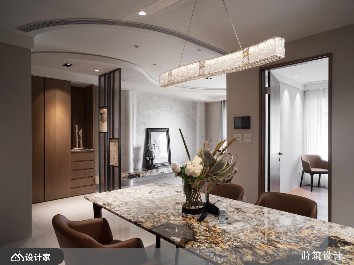 208平米新成屋座落于台中精华地段,大雄室内设计 林政纬设计师拥有能充足阐述建筑与室内的涵构关係的精湛手法,使空间内延续着建筑本身的古典气息,精心妆点室内的每一起居,打造出犹如博物馆般优雅别緻的生活体验。