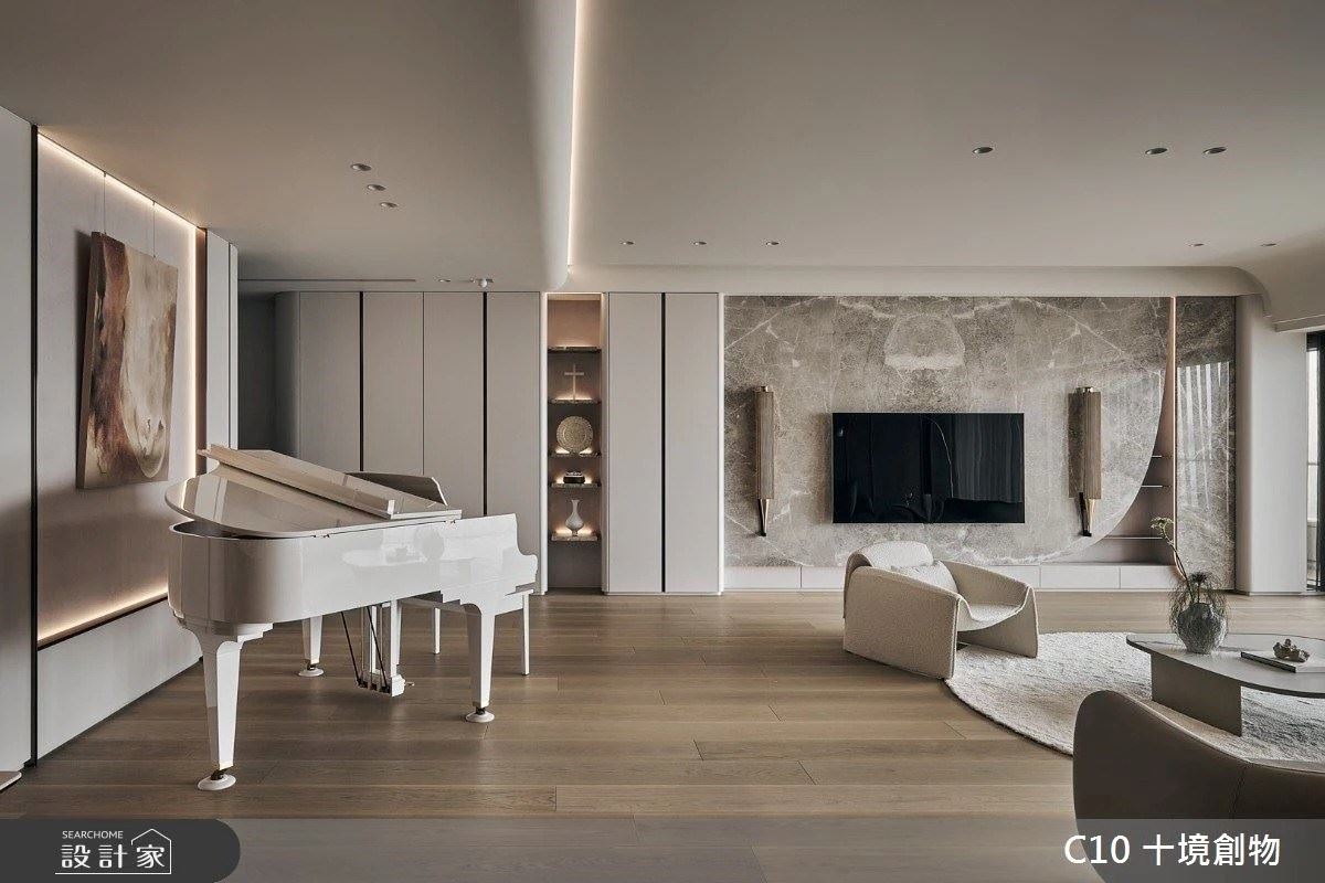 高樓層在設計的過程中,需要考量平衡內外空間景色。謝中泰、程力莉設計師,透過奶油色搭配木作手作感,同時規劃與毛小...