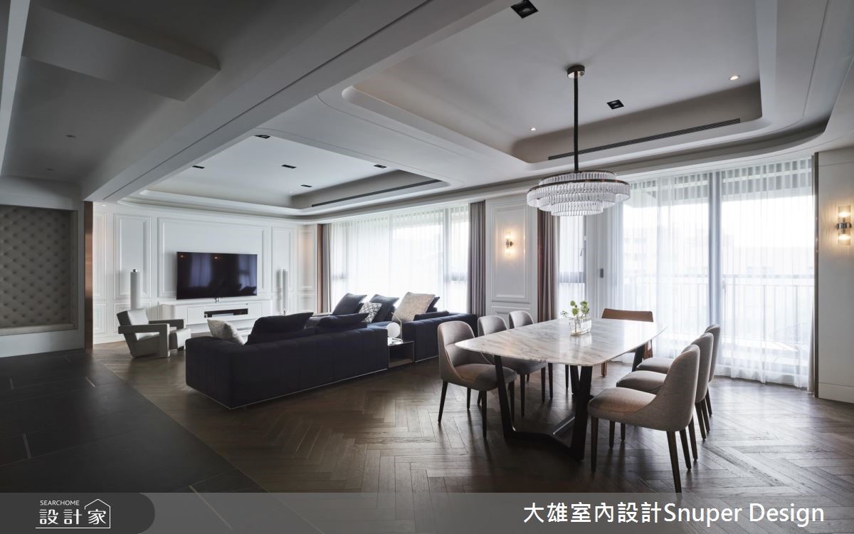 以現代風格為基底,注入古典風情的優雅與細緻,空間裡更藉由雙軸線的格局安排,讓人文居所與自然綠意、都市面貌相融,...