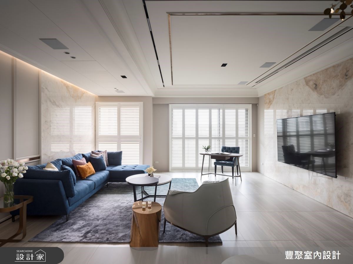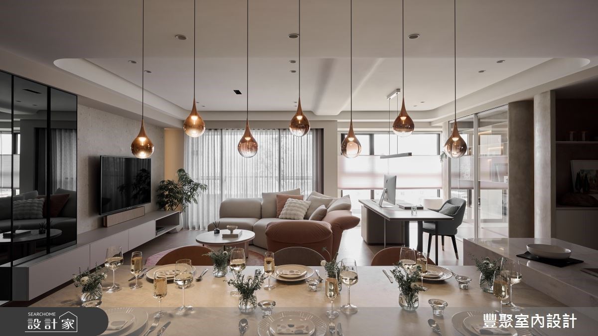 101 坪預售屋不僅是要乘載一家四口的日常生活,更要擁有能招待賓客與親友的舒適空間。豐聚室內設計在開放式空間規...