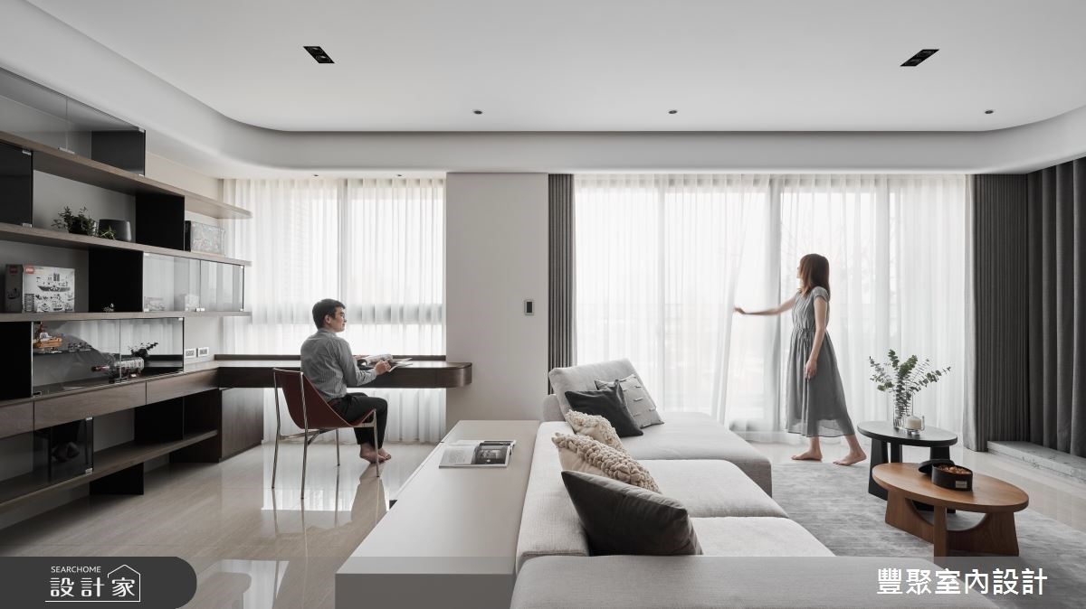 白色,可以簡單,也可以很不簡單。清澈透明的空間令人踏入就神清氣爽。以落地窗鋪排四周牆面,搭配簡單的杏色捲簾,陽...