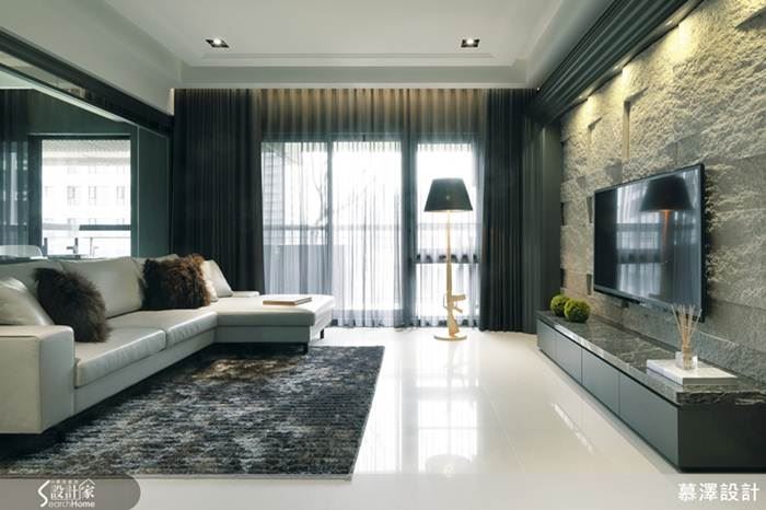 針對屋主喜好,決定跳脫傳統白色古典概念,以深色的線板牆、黑鏡做主體,並放置以黑色幽默風格的卓別林畫作,加上大理...