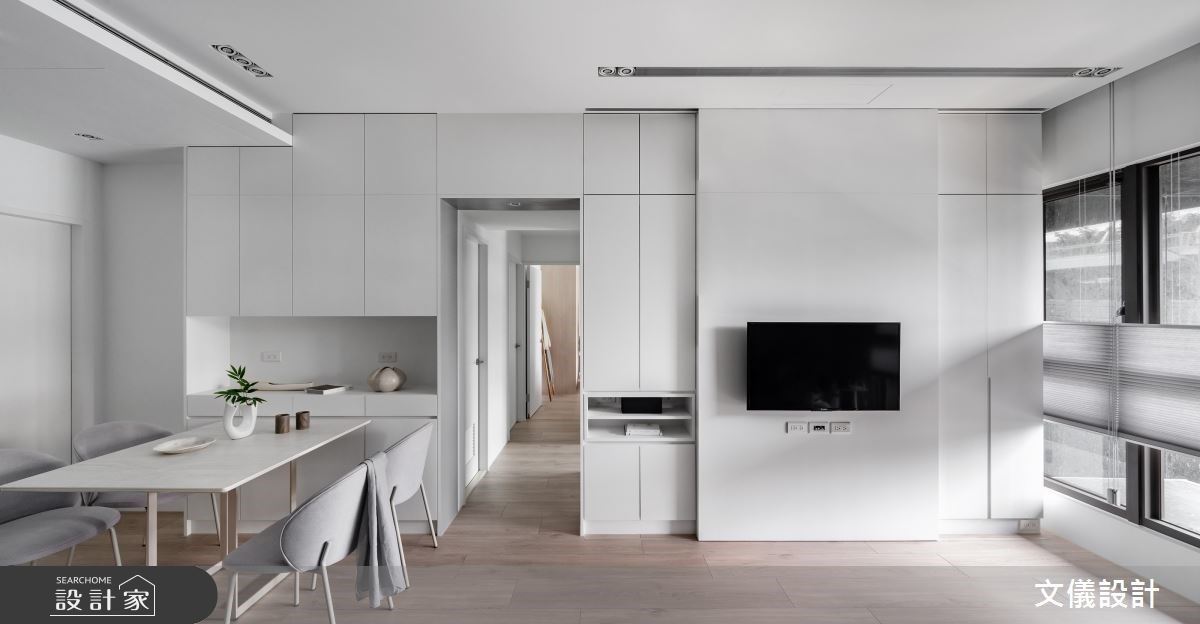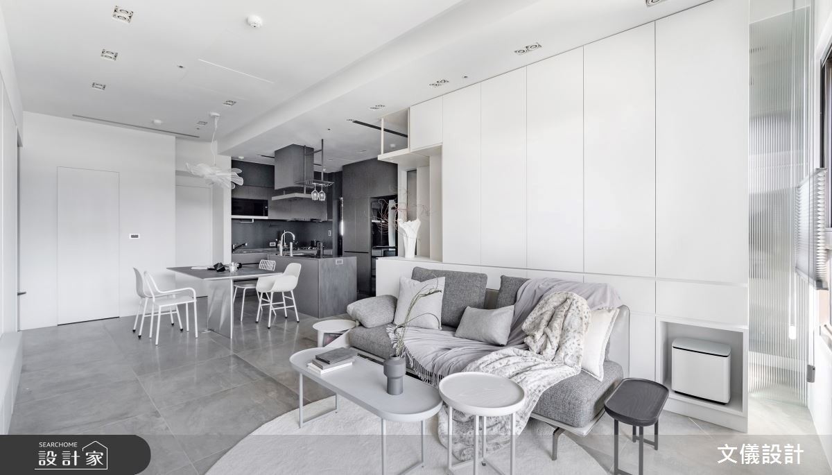 25坪現代風居家,以極簡的黑白灰三色,搭襯多樣同色的異材質,寫下一塵不染的乾淨樣貌,並運用有別一般的設計手法,...