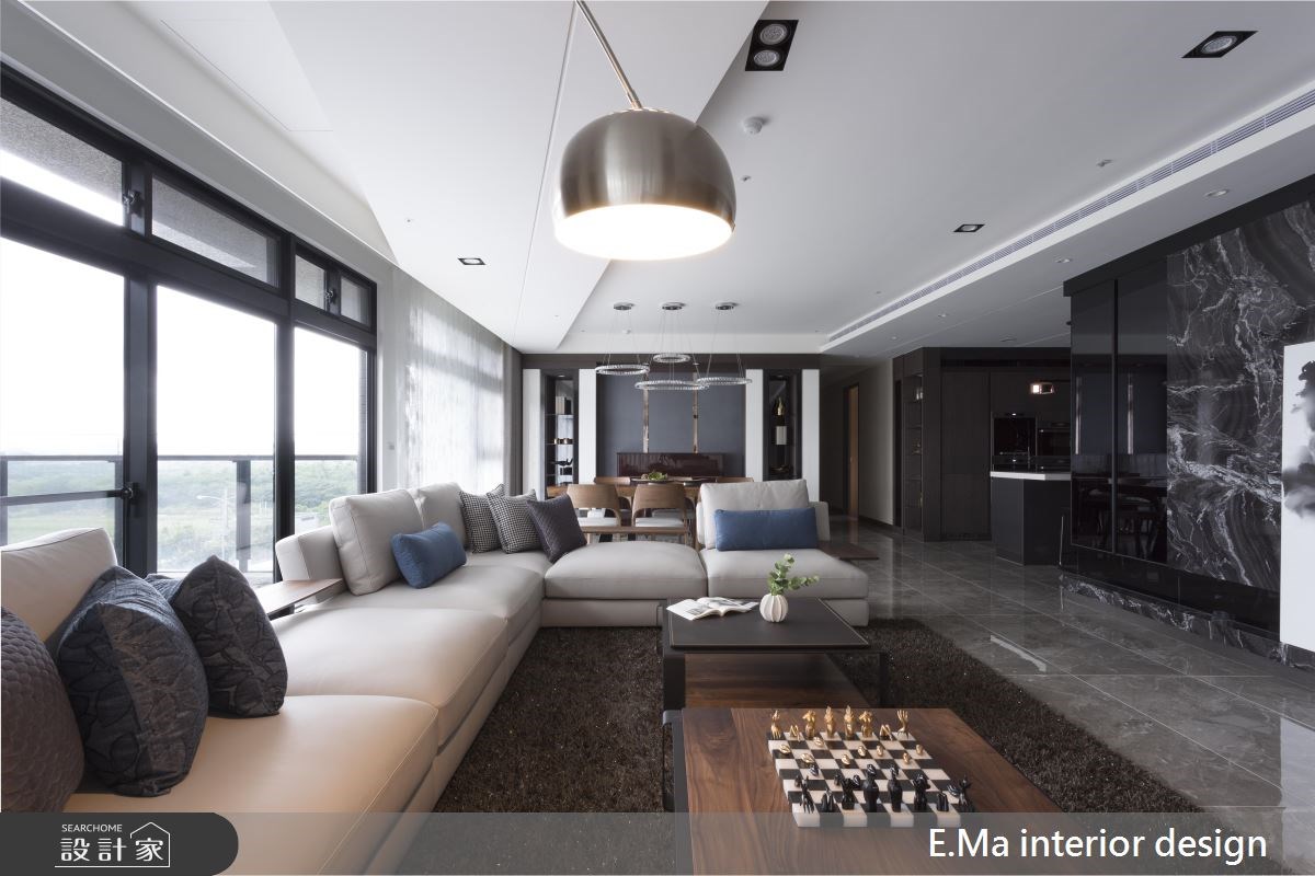 坐落在水岸旁的135坪大器豪宅,擁有無敵遼闊的山河美景,是吸引屋主購入新宅的首要關鍵,設計師王惠婷以現代風居宅...
