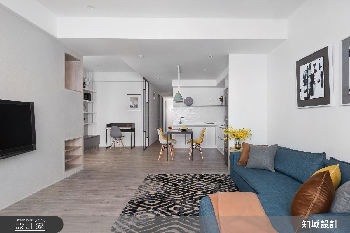 30 年老屋,設計師將格局重整後,採以開放式設定重塑公領域,使客廳、餐廳、廚房、書房完美串聯,並揮灑純粹的白色...