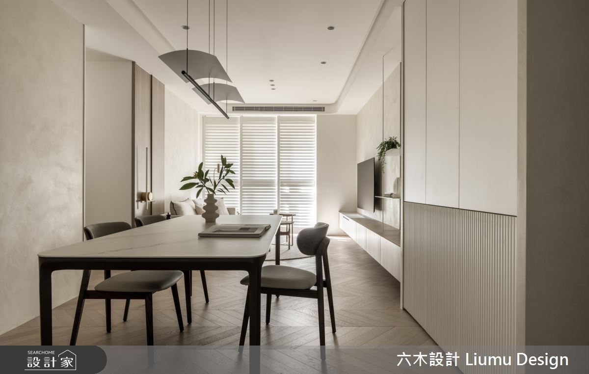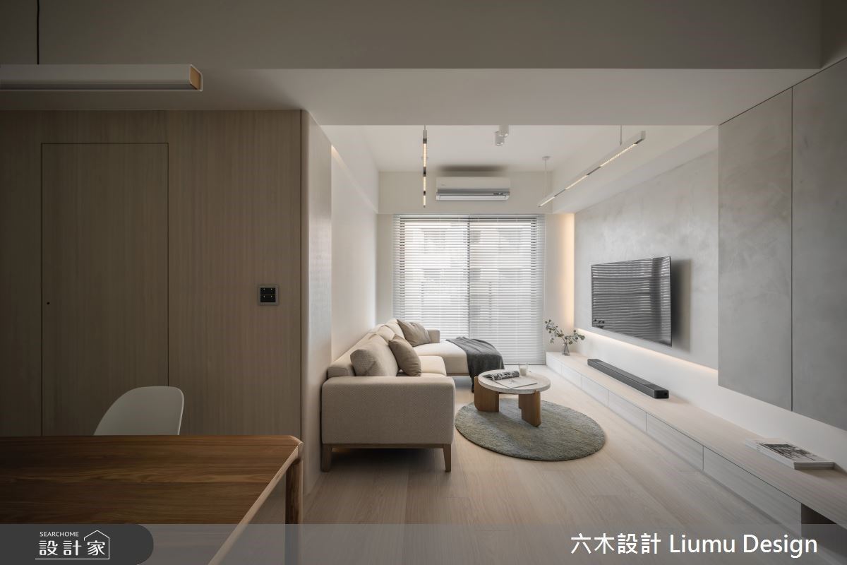 20坪新成屋融入北歐與簡約現代風,以白色作為空間背景的基底,局部利用木紋提高居所內在溫度,及燈帶妝點,搭佐實用...
