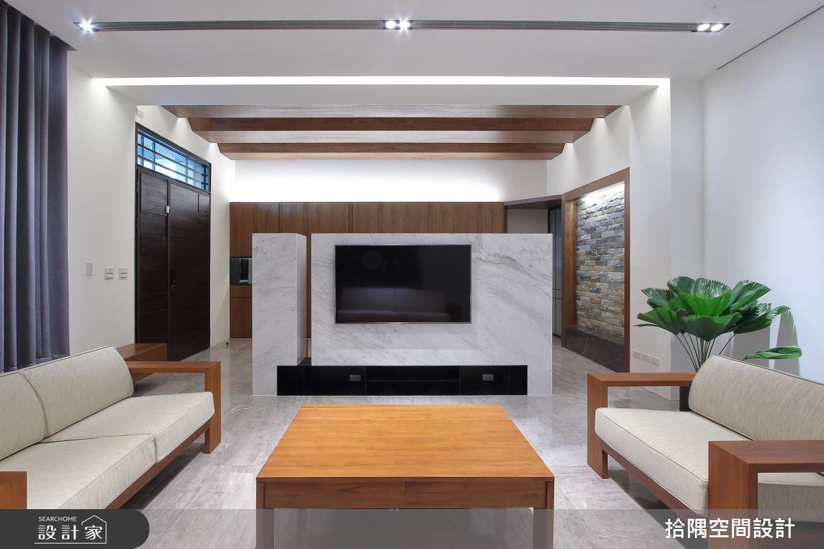 31 坪透天別墅,設計師讓住宅以簡約風為基底,尤其特別著墨一樓客廳的公共區域,在簡單之中兼具氣派大方,並規劃專...