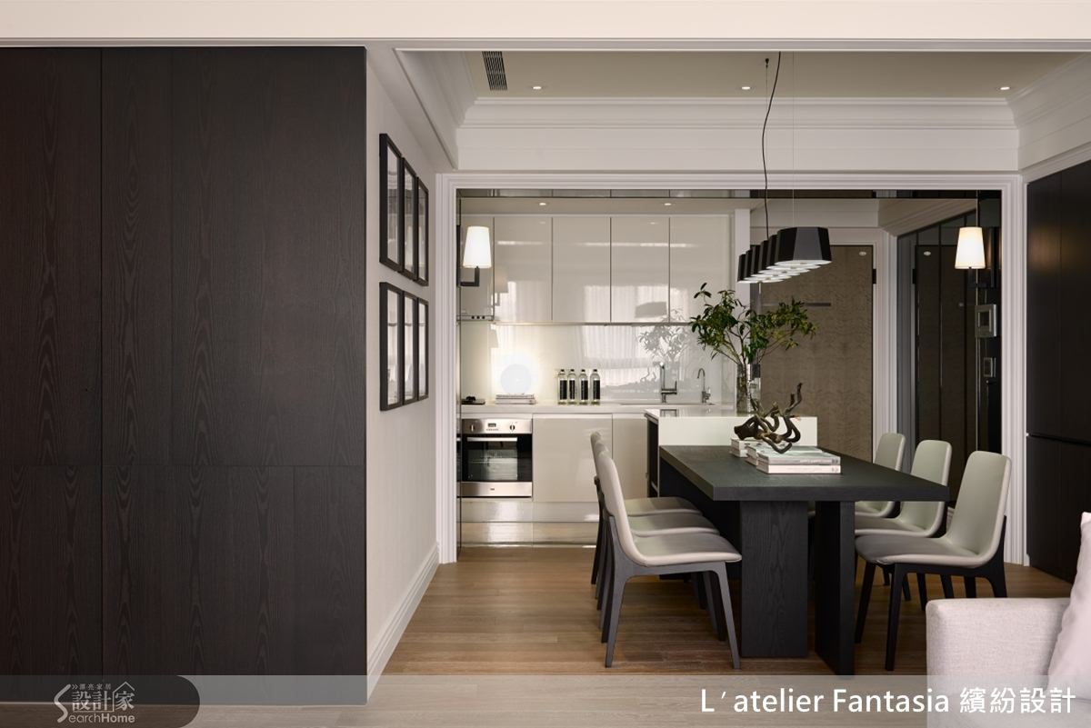 41 坪居家,設計師以新古典作為設計語彙,並將軟件陳設與硬體空間完美搭配,於新古典元素中加入時尚亮點,打造出宛...