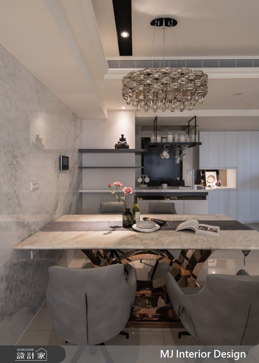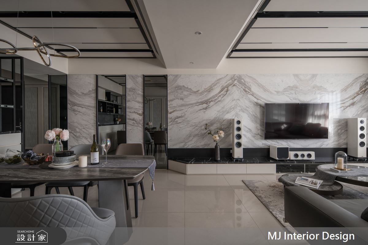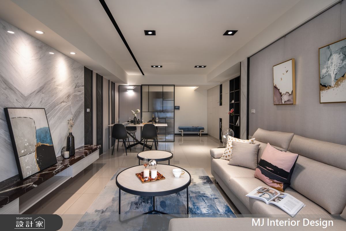 本案為銘家MJ Interior Design的30坪現代風新成屋(5年以下)設計作品,格局為單層三房的居住空間。全室建材的搭配,應用鍍鈦金屬、大理石、皮革、石材、薄板、黑鏡、木作、格柵,展現溫馨的居家氛圍。