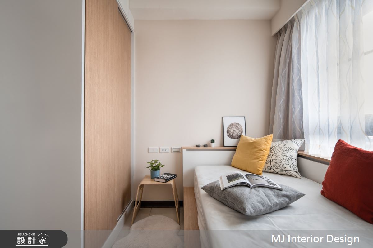 銘家MJ Interior Design以烤玻、木作貼皮、系統板材、調光簾的搭配應用,呈現日式無印風居家氛圍,將此間20坪、三房、單層、新成屋(5年以下)打造成舒適愜意的家庭空間,完成2位大人、2位小孩全家人的夢想之居。
