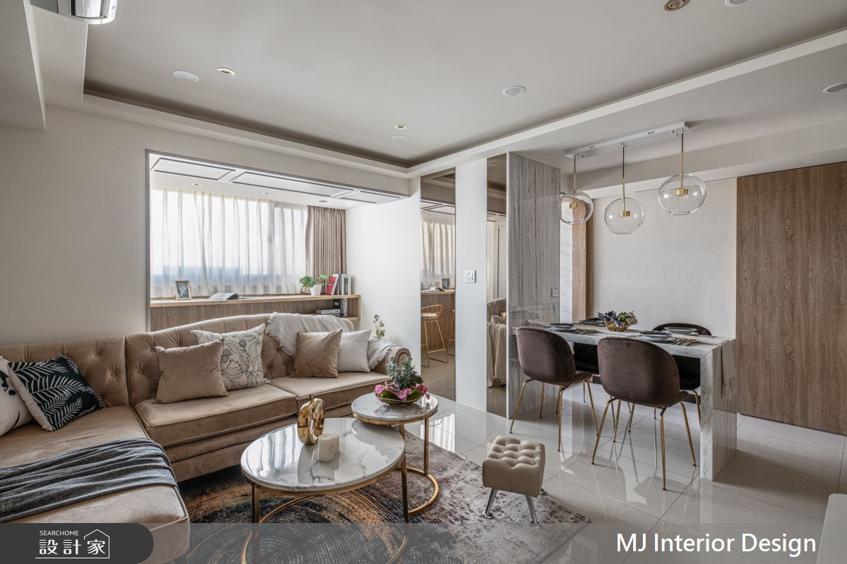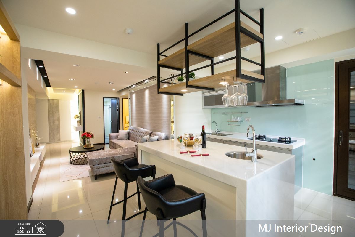 來自銘家MJ Interior Design的20坪現代風住宅案,是一間單層新成屋(5年以下)的兩房格局,設計師藉由建材以烤玻、木作貼皮、系統板材、大理石、調光簾的搭配應用,實現一家人的理想生活。