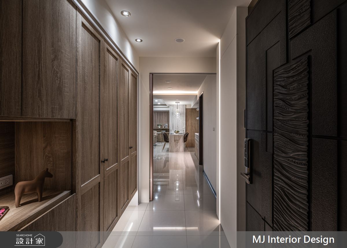 銘家MJ Interior Design以乳膠漆、壁紙、石英磚/拋光石英磚、鍍鈦金屬、木作貼皮、大理石、繃布、噴漆、茶鏡、長虹玻璃的搭配應用,呈現輕奢風居家氛圍,將此間22坪、三房、單層、新成屋(5年以下)打造成舒適愜意的家庭空間,完成全家人的夢想之居。