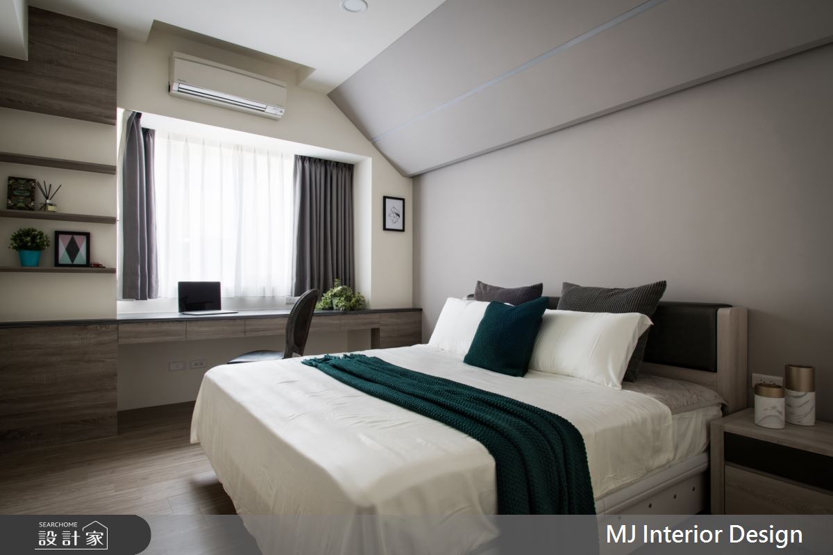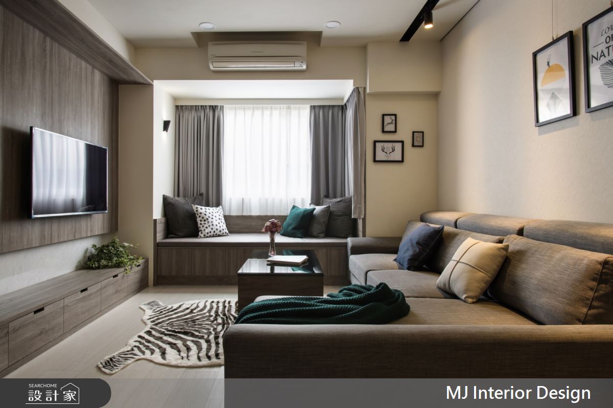 本案為MJ Interior Design的35坪現代風新成屋(5年以下)設計作品,格局為單層三房的居住空間。居住成員包含2位大人。全室建材的搭配,應用科技木皮、磁磚、美耐板、玻璃、系統櫃、調光簾,展現溫馨的居家氛圍。