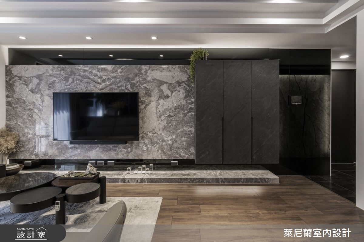 由萊尼薾室內設計精心規劃的24坪三房住宅空間,家庭成員一共有2位大人。因應屋主需求,設計師運用現代風作為主軸,搭配超耐磨木地板、鐵件、大理石、系統櫃、藝術塗料、礦石,打造全家人的夢想家居。
