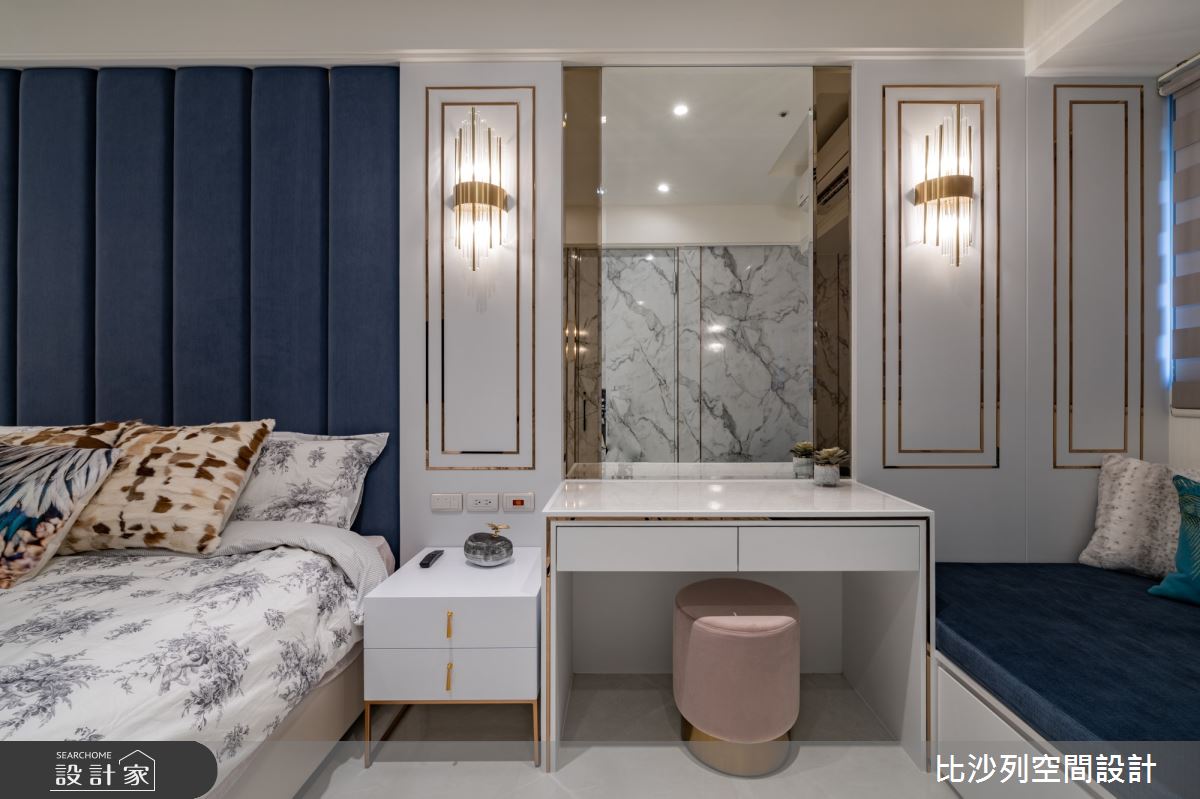 本案為比沙列空間設計的50坪混搭風新成屋(5年以下)設計作品,格局為單層三房的居住空間。居住成員包含2位大人。全室建材的搭配,應用木作、大理石、鍍鈦、噴漆、玻璃、茶鏡、鋁條燈,展現溫馨的居家氛圍。
