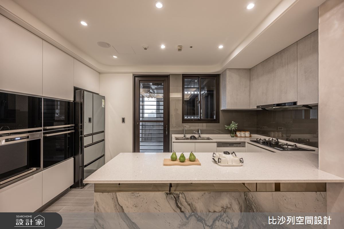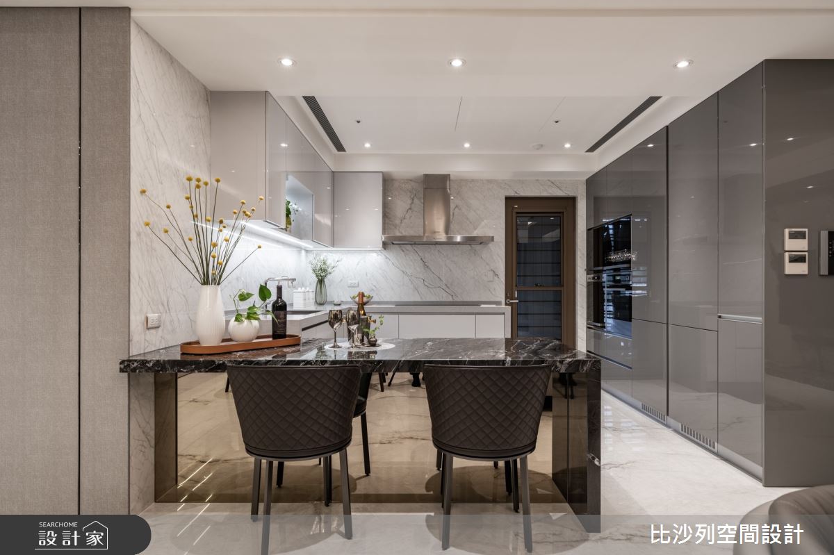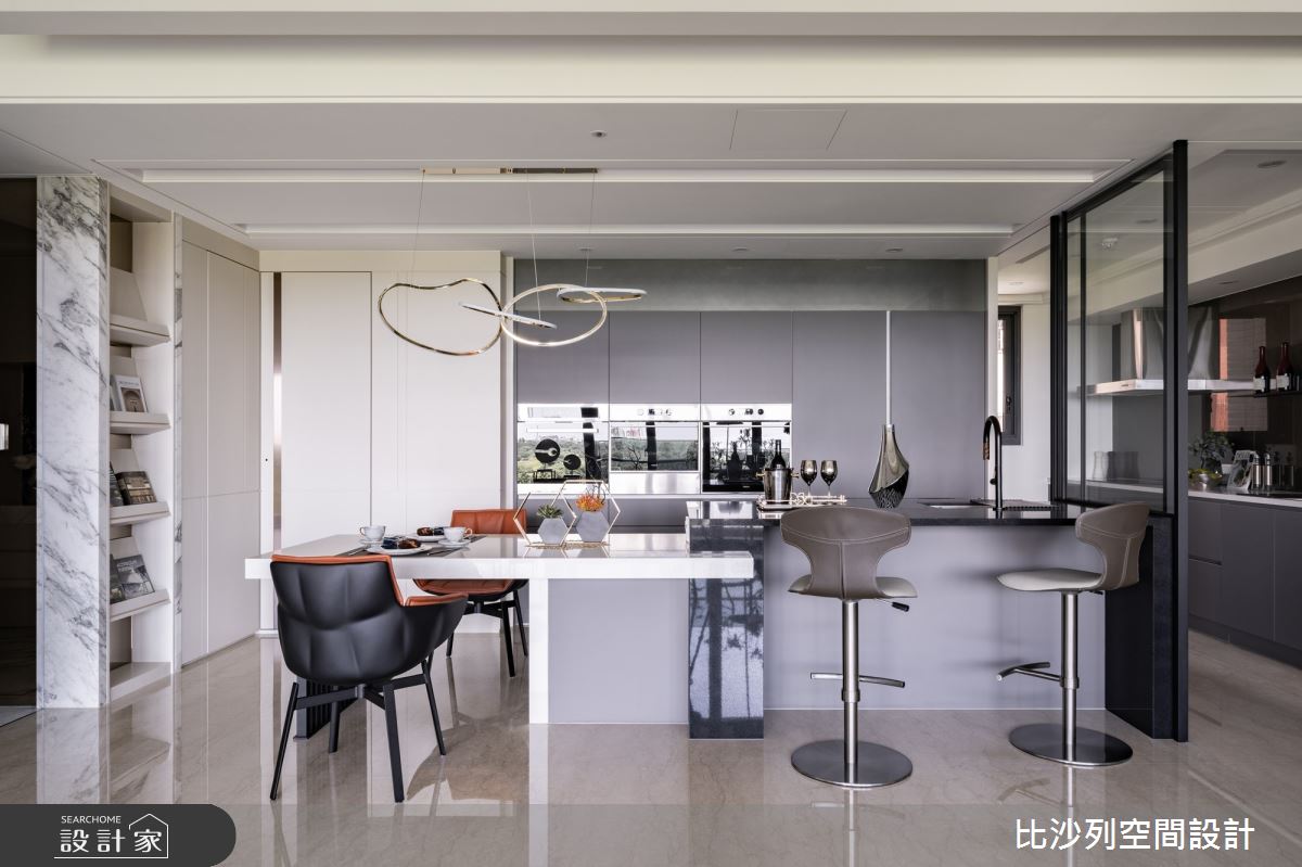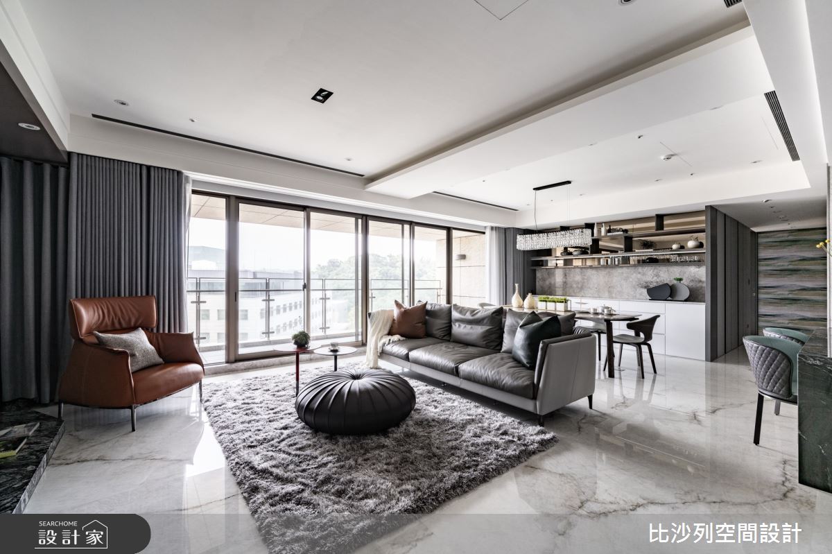 來自比沙列空間設計的71坪現代風住宅案,是一間單層毛胚屋的一房格局,設計師藉由建材以進口磁磚、石材、金屬的搭配應用,實現一家人的理想生活。