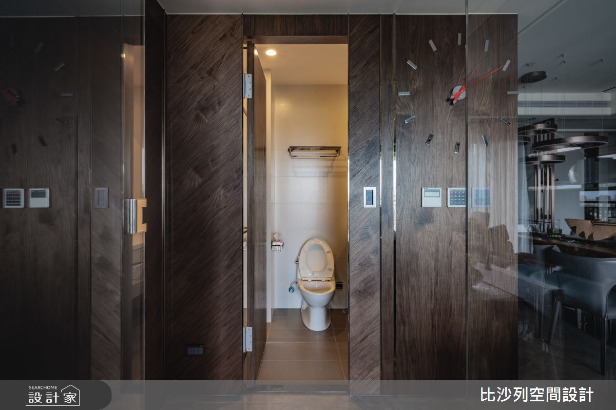 本案為比沙列空間設計的55坪現代風新成屋(5年以下)設計作品,格局為單層三房的居住空間。全室建材的搭配,應用鋼刷木皮、鍍鈦板、大理石、鐵件烤漆,展現溫馨的居家氛圍。