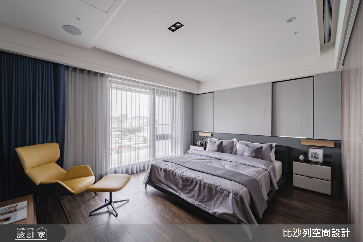 本案為比沙列空間設計的46坪現代風新成屋(5年以下)設計作品,格局為單層三房的居住空間。全室建材的搭配,應用鐵件、石材、玻璃、木皮、壁紙,展現溫馨的居家氛圍。