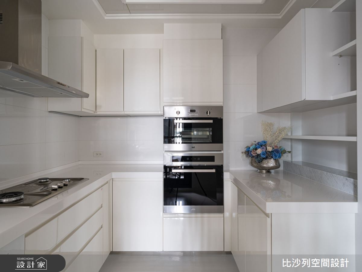 比沙列空間設計以鐵件、木皮、大理石、噴漆、烤漆、壁爐、窗簾、繃布的搭配應用,呈現現代風居家氛圍,將此間60坪、三房、單層、新成屋(5年以下)打造成舒適愜意的家庭空間,完成全家人的夢想之居。
