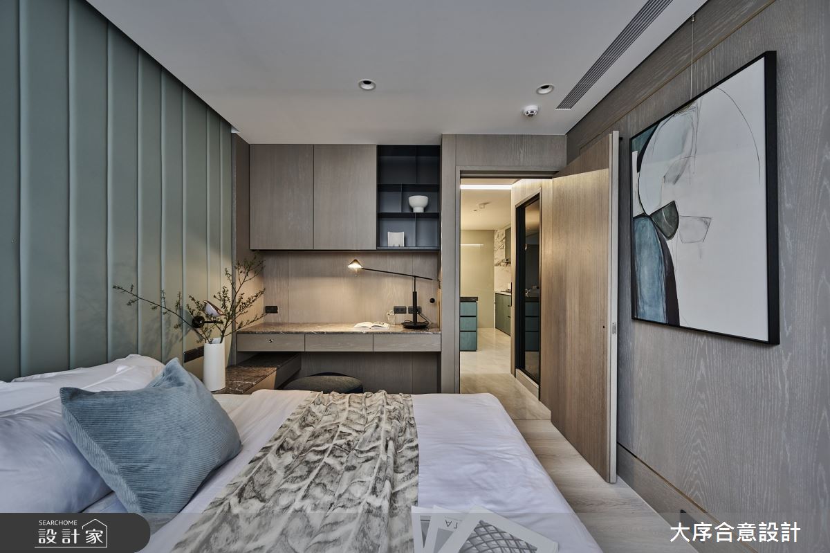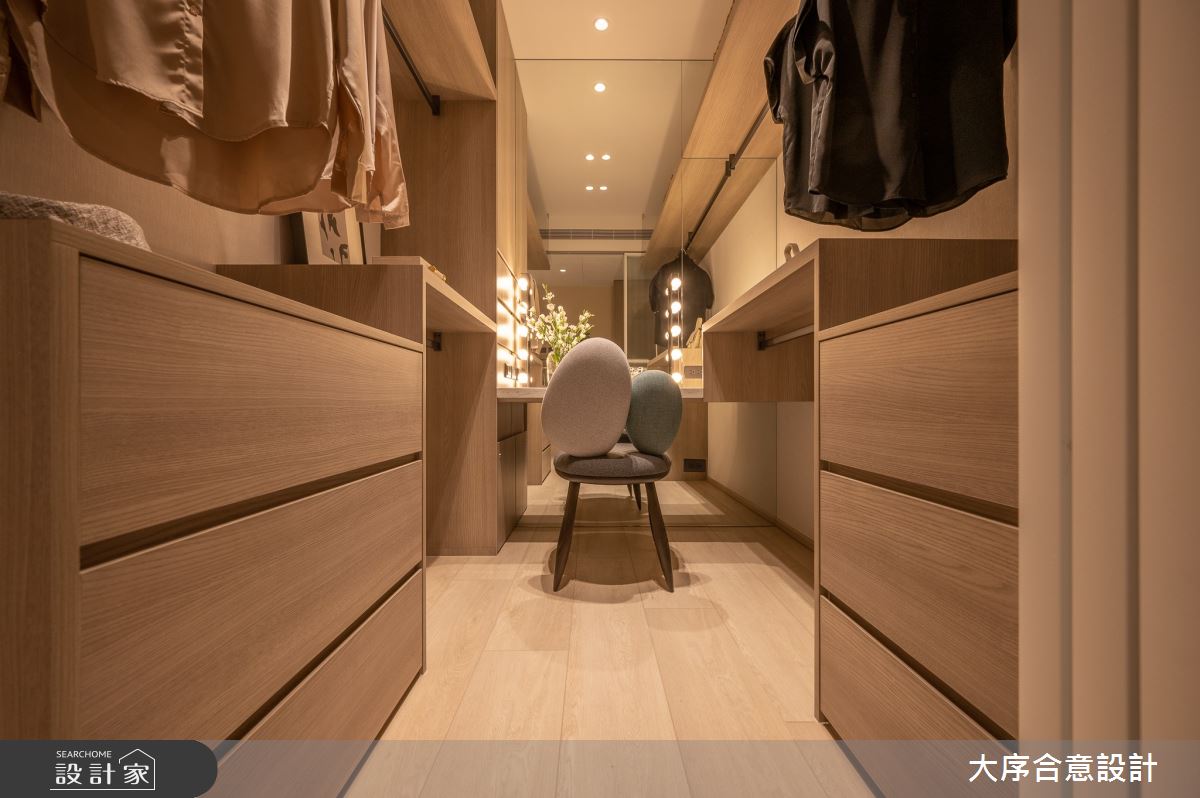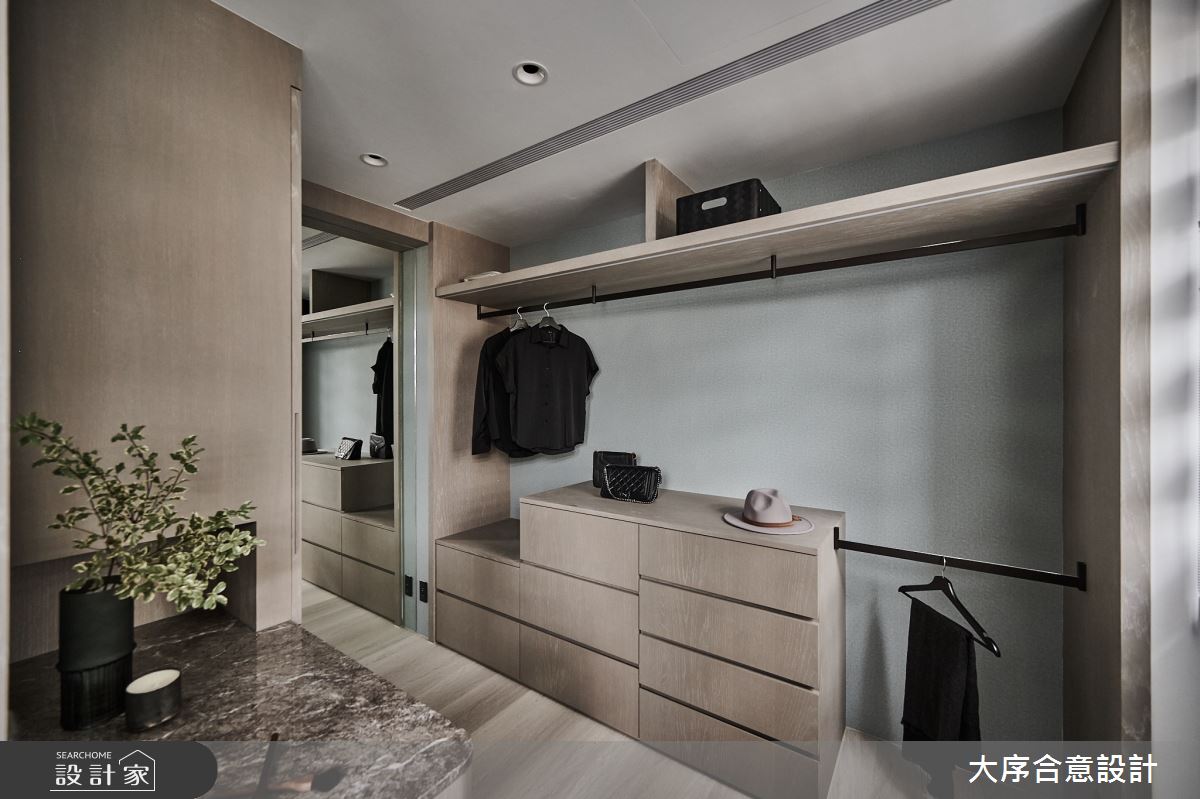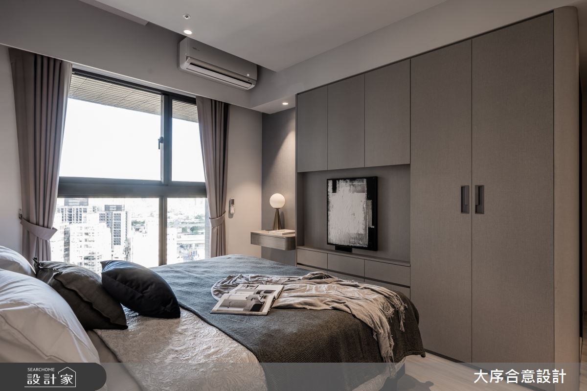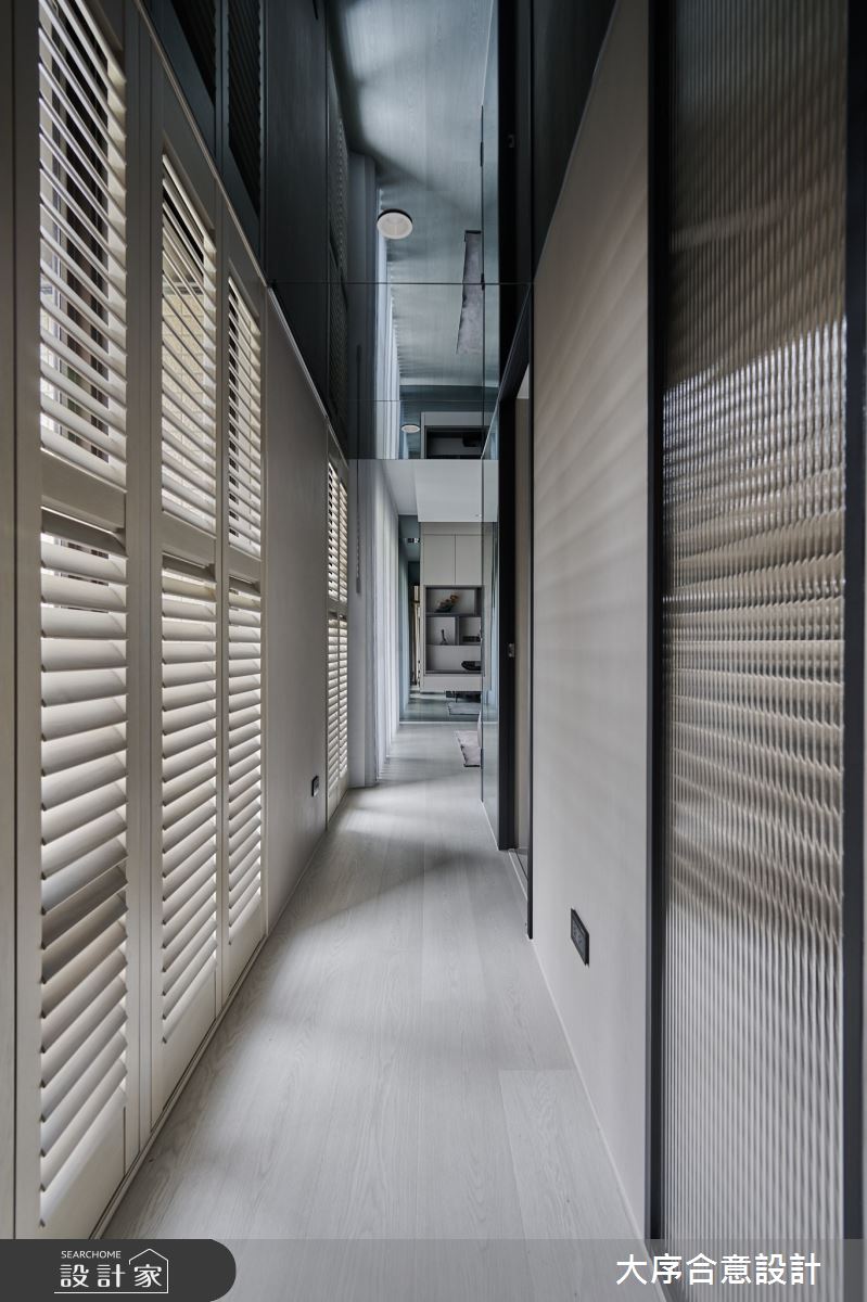 由大序合意設計精心規劃的60坪三房住宅空間。因應屋主需求,設計師運用現代風作為主軸,搭配乳膠漆、超耐磨木地板、灰鏡、鍍鈦金屬、木作貼皮、烤漆、石材、繃布、大板磚,打造全家人的夢想家居。