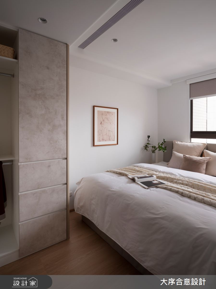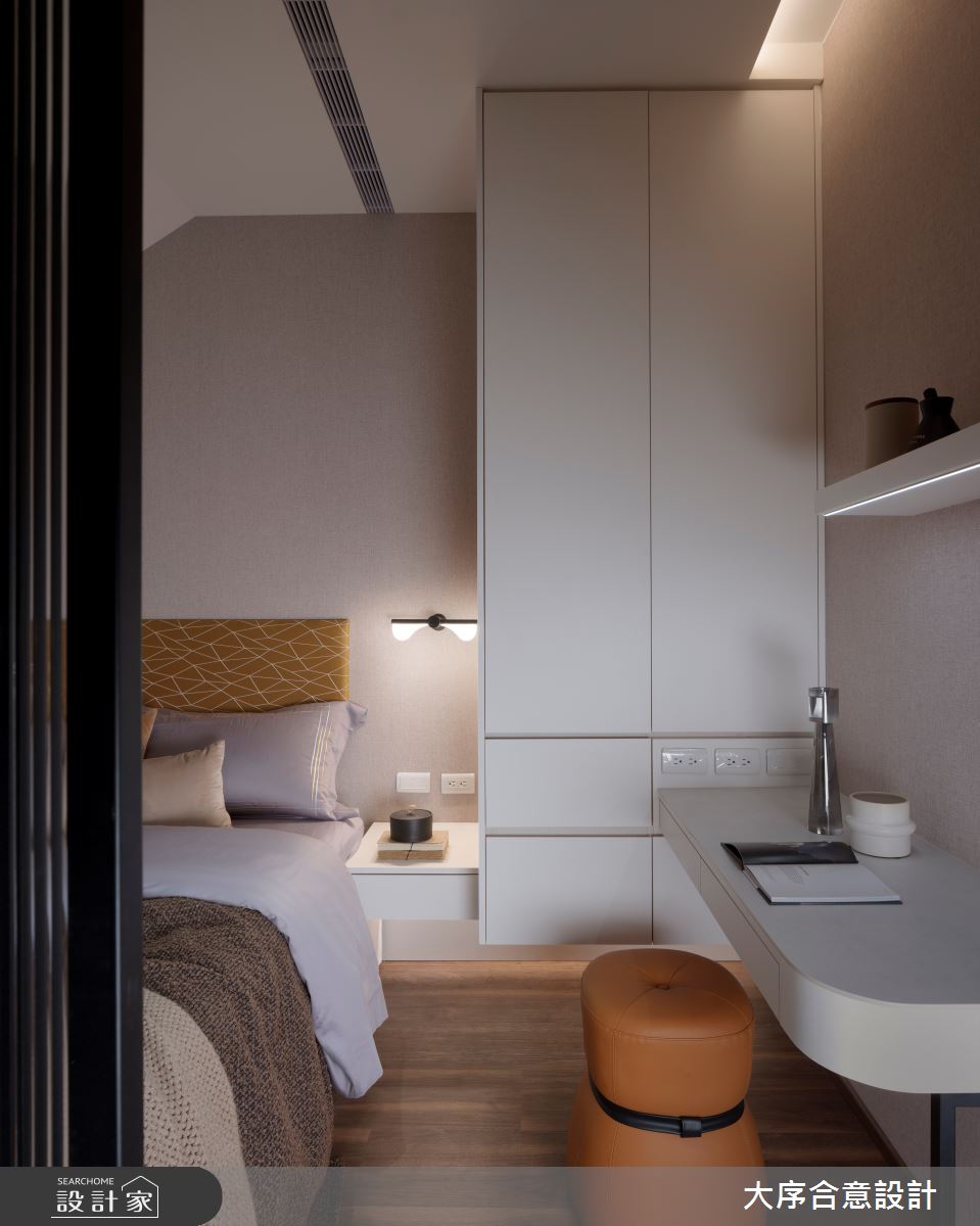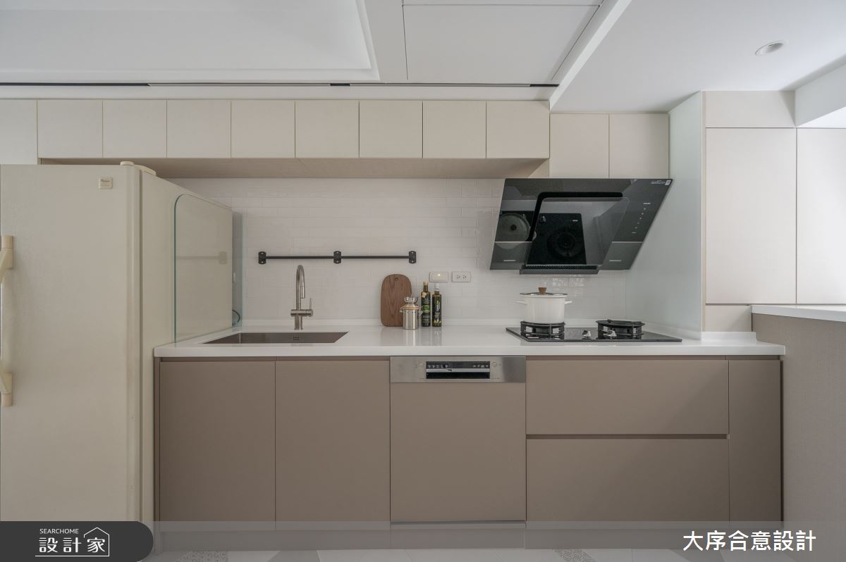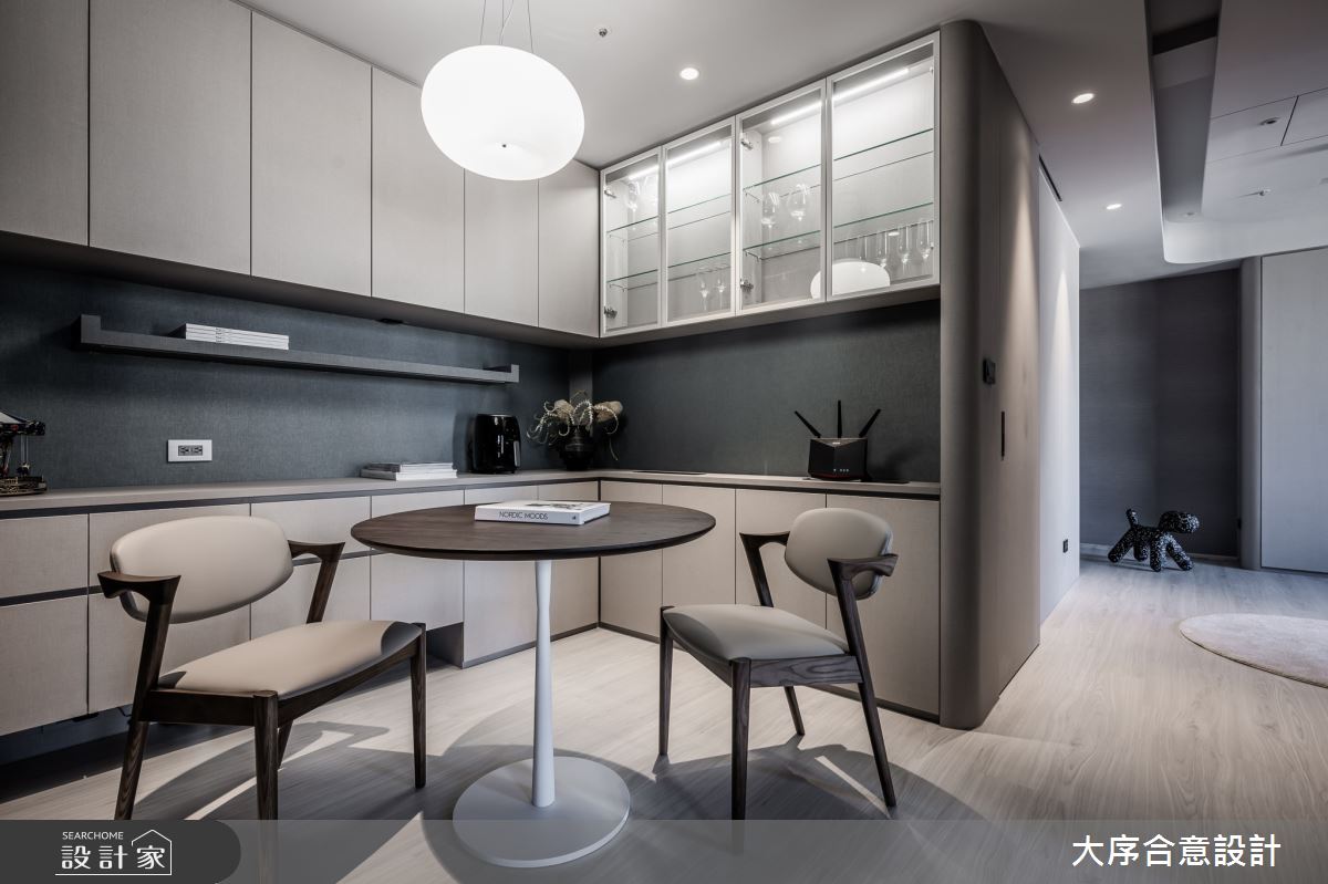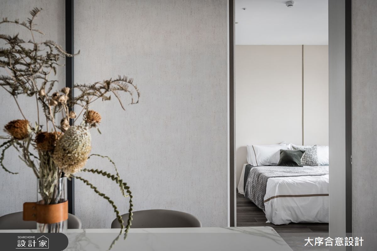 來自大序合意設計的36坪現代風住宅案,屋主一家人共有2位大人,是一間單層新成屋(5年以下)的兩房格局,設計師藉由建材以乳膠漆、壁紙、超耐磨木地板、鍍鈦金屬、實木皮板、美耐板的搭配應用,實現一家人的理想生活。