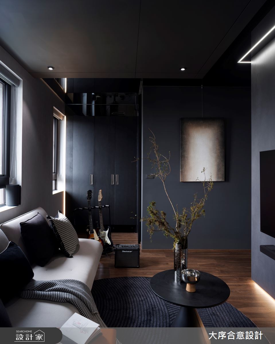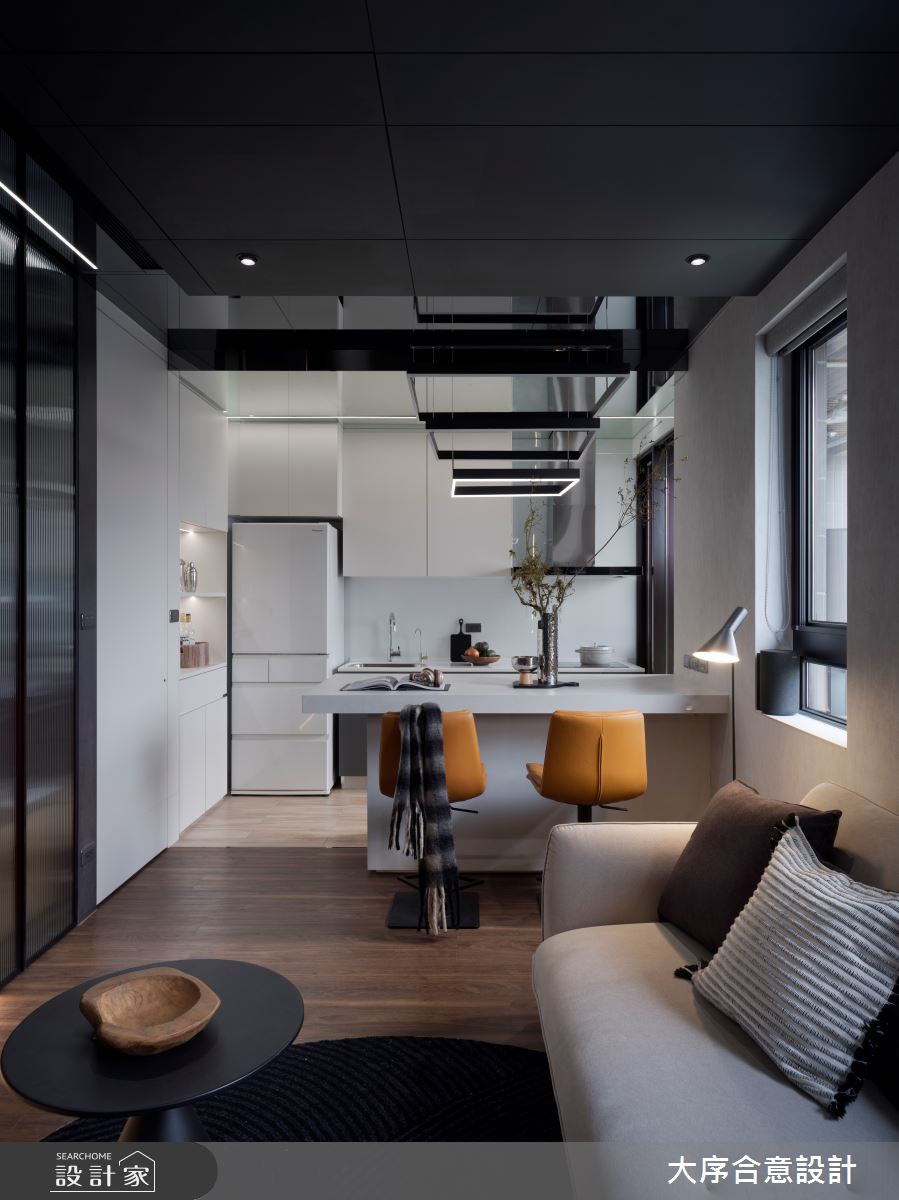 來自大序合意設計的16坪極簡風住宅案,是一間單層新成屋(5年以下)的兩房格局,設計師藉由建材以灰鏡、鍍鈦金屬、進口美耐板、義大利大板磚、進口壁紙的搭配應用,實現一家人的理想生活。