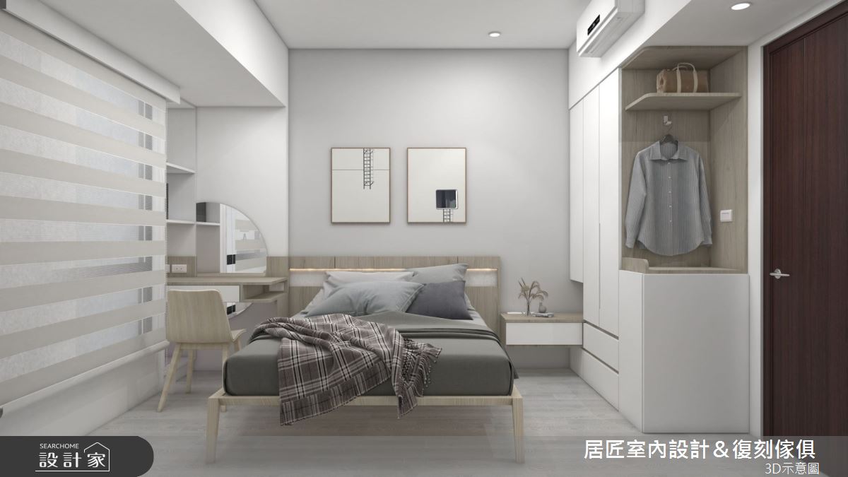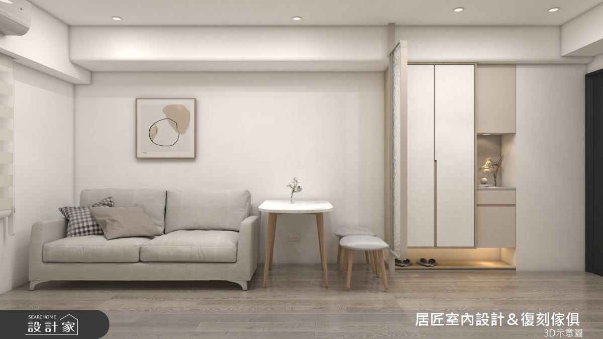 本案為居匠室內設計&復刻傢俱的16坪現代風新成屋(5年以下)設計作品,格局為單層兩房的居住空間。居住成員包含2位大人、1位小孩。全室建材的搭配,應用系統板、極真板、美耐板、油漆、塗料、烤漆玻璃,展現溫馨的居家氛圍。