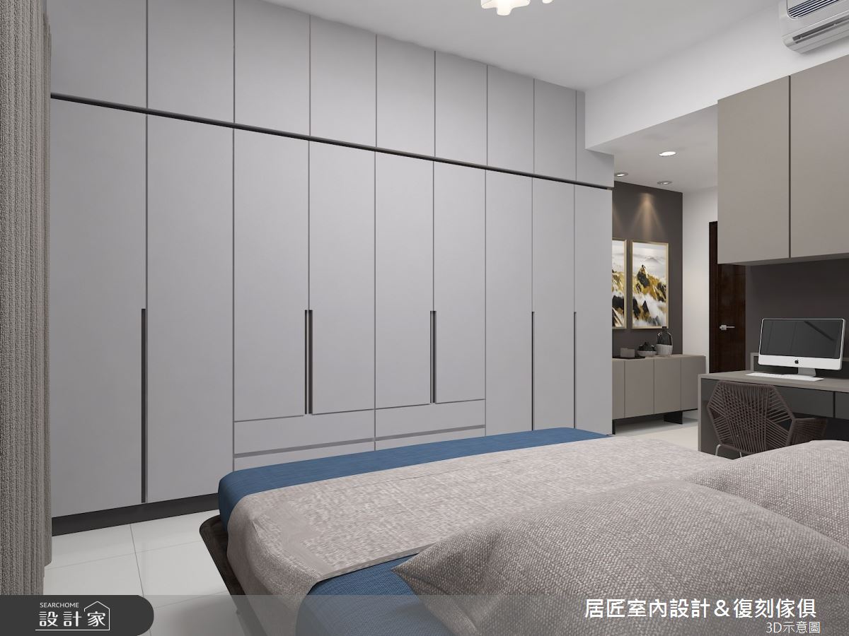由居匠室內設計&復刻傢俱精心規劃的30坪三房住宅空間,家庭成員一共有2位大人、2位小孩。因應屋主需求,設計師運用現代風作為主軸,搭配鐵件、超耐磨地板、系統板、油漆、賽麗石,打造全家人的夢想家居。