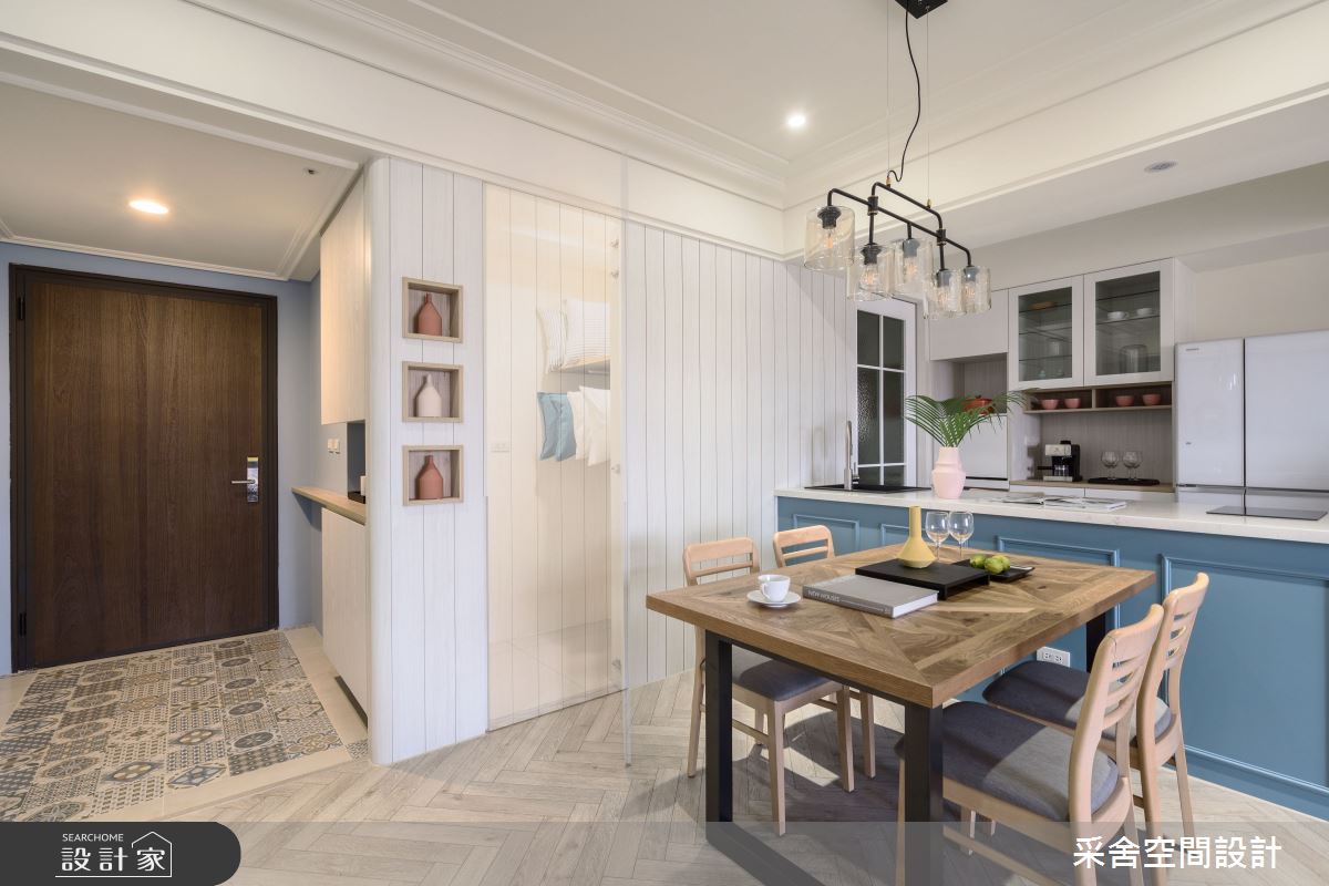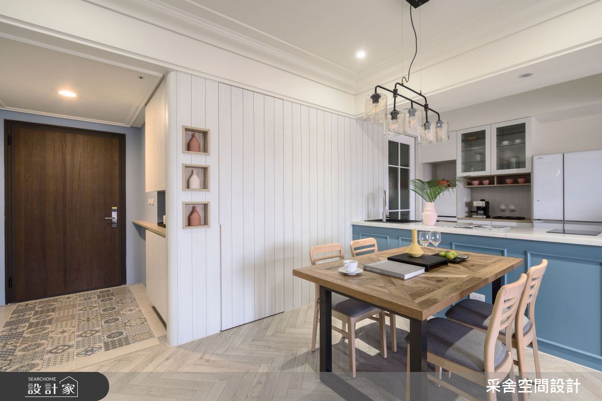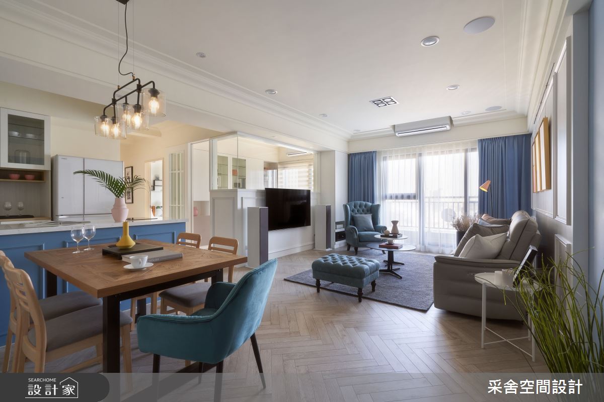 由采舍空間設計精心規劃的22.5坪三房住宅空間,家庭成員一共有2位大人、2位小孩。因應屋主需求,設計師運用混搭風作為主軸,搭配茶鏡、特殊塗料、環保漆、系統櫃、環保板材,打造全家人的夢想家居。