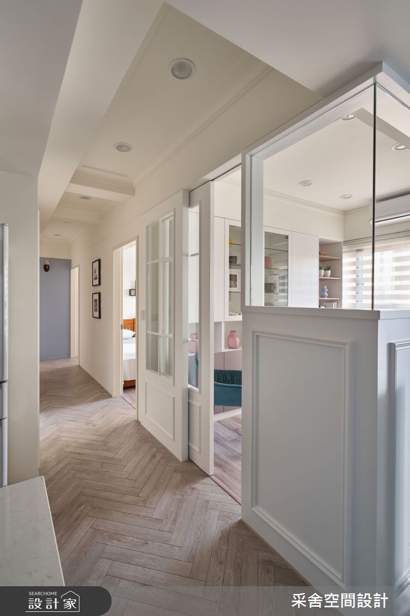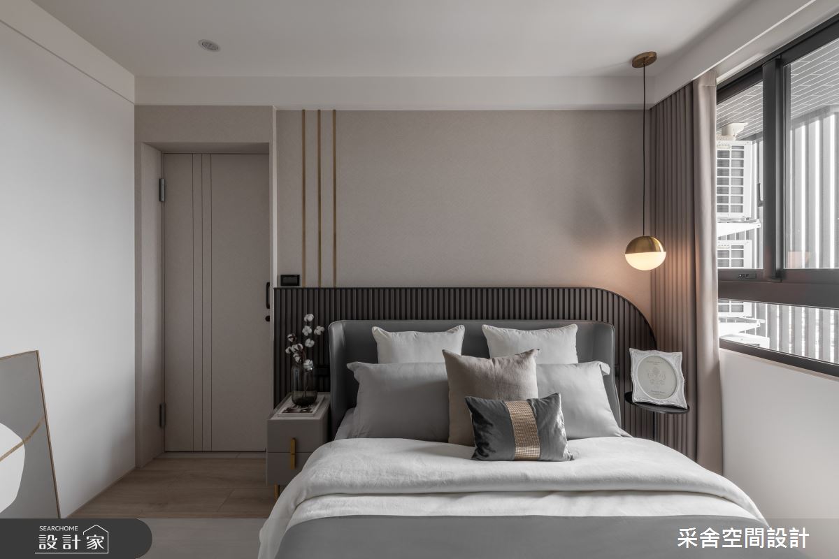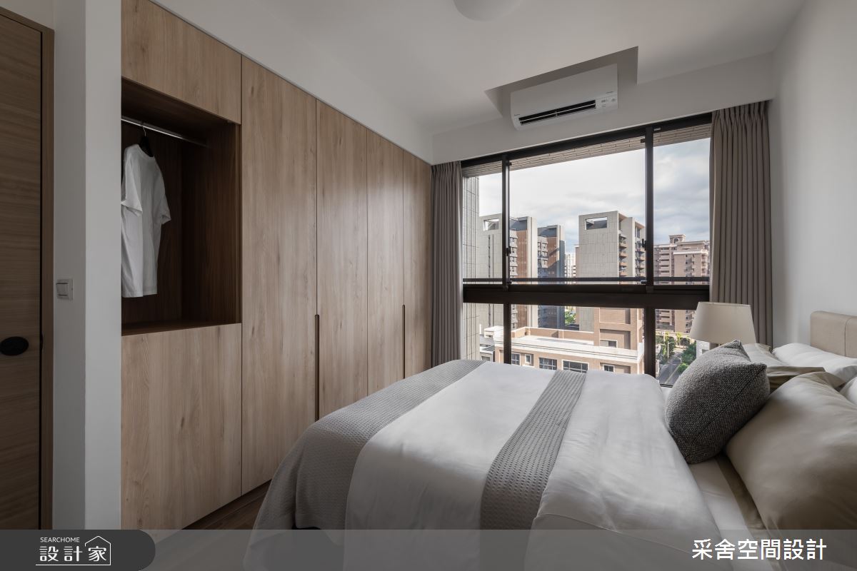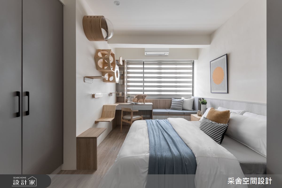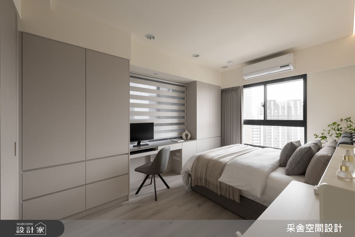 本案為采舍空間設計的31坪現代風新成屋(5年以下)設計作品,格局為單層三房的居住空間。居住成員包含1位大人、2位小孩。全室建材的搭配,應用乳膠漆、超耐磨木地板、鐵件、系統板材、spc地板、灰玻、金屬、大板磚,展現溫馨的居家氛圍。