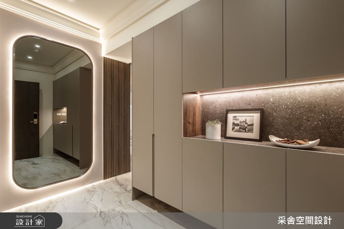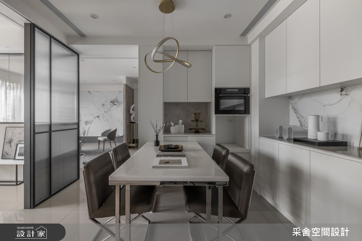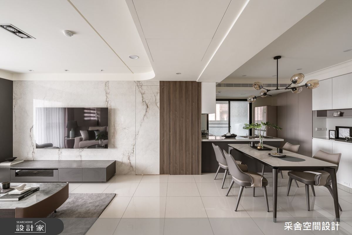 來自采舍空間設計的41坪現代風住宅案,是一間單層新成屋(5年以下)的兩房格局,設計師藉由建材以鍍鈦金屬、系統板材、皮革、大板磚、智能系統、格柵板的搭配應用,實現一家人的理想生活。