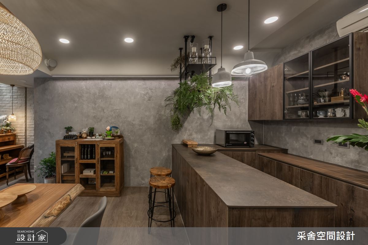 由采舍空間設計精心規劃的10坪商業空間,因應業主需求,設計師運用混搭風作為主軸,搭配建材超耐磨木地板、鐵件、義大利特殊塗料、系統櫃、超耐磨地板、石英、薄板,打造精緻品味的空間氛圍。