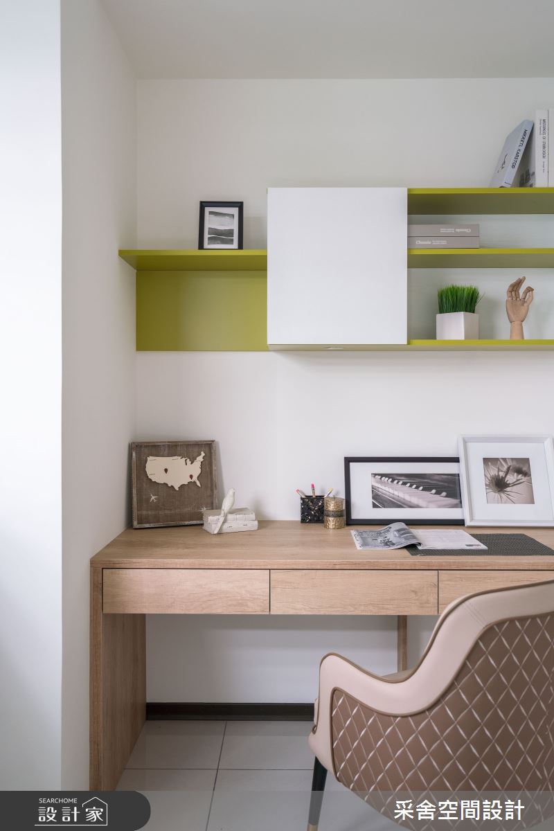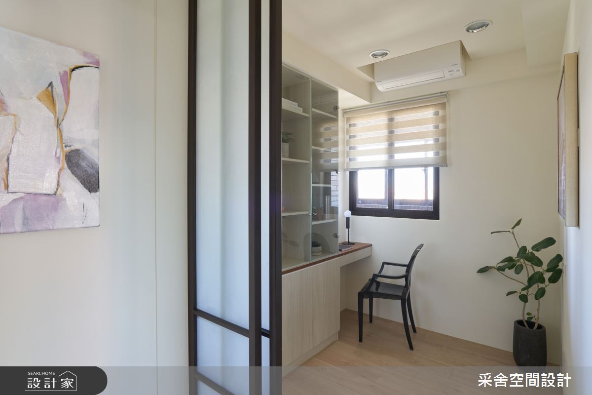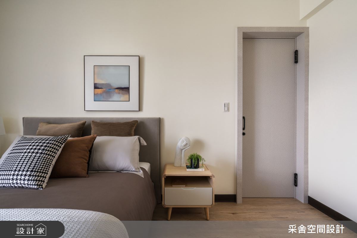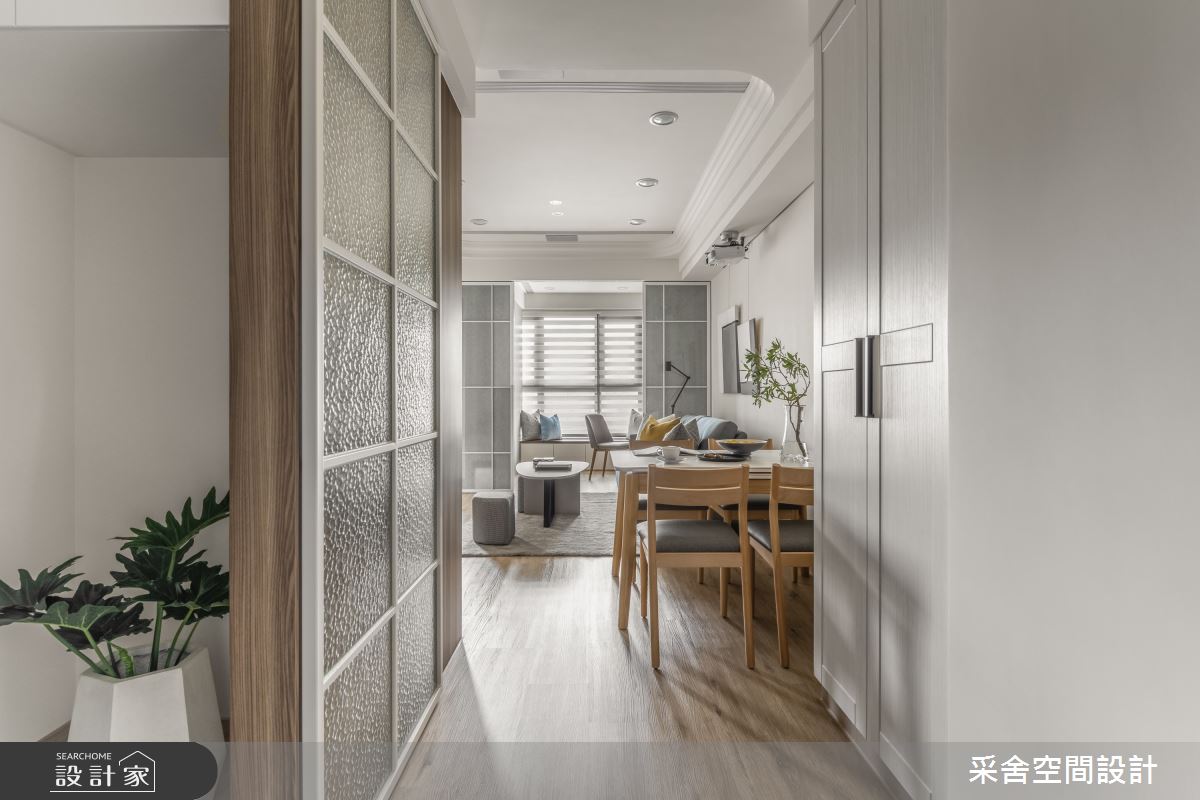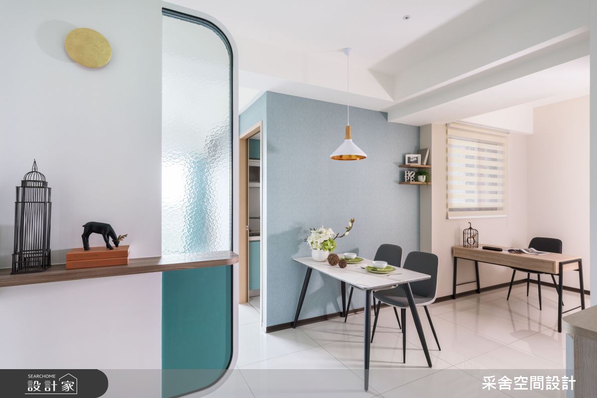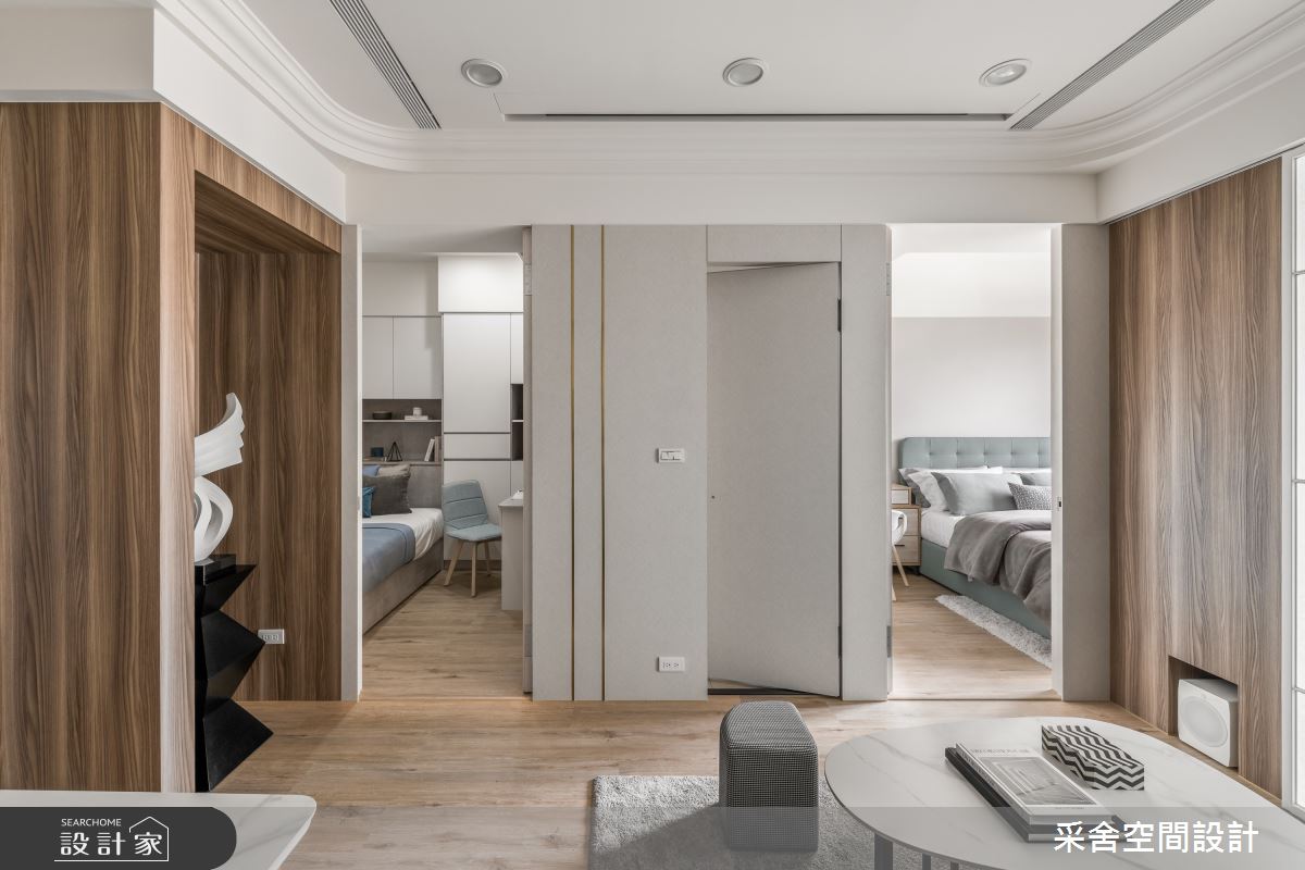本案為采舍空間設計的21坪北歐風新成屋(5年以下)設計作品,格局為單層的居住空間。全室建材的搭配,應用油漆、壁紙、木皮、系統櫃、水波紋玻璃,展現溫馨的居家氛圍。