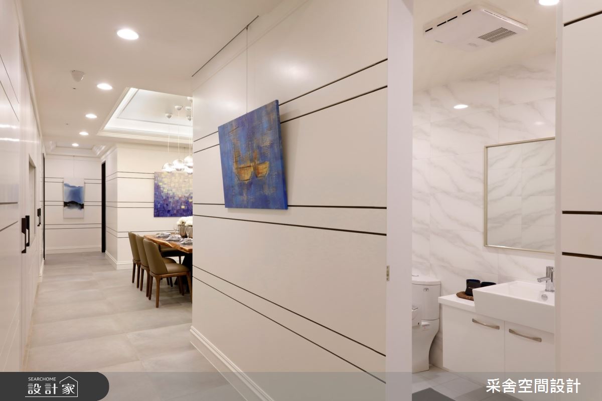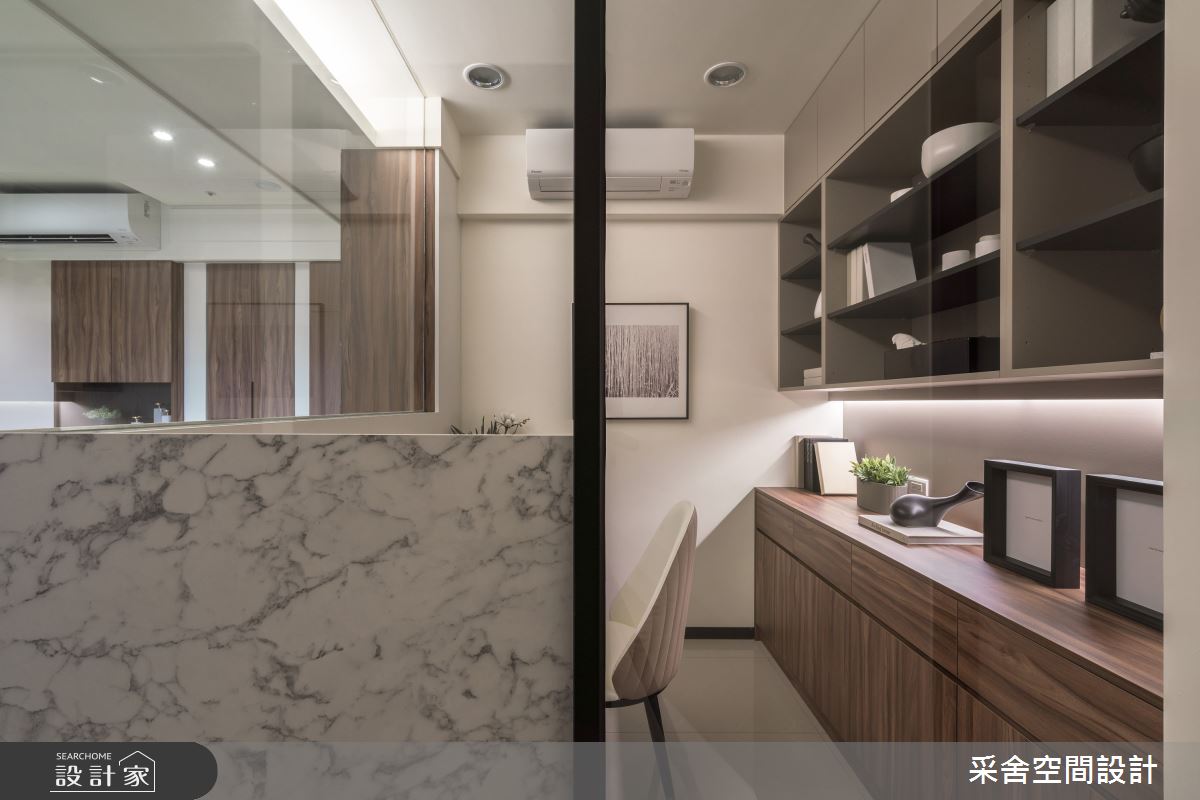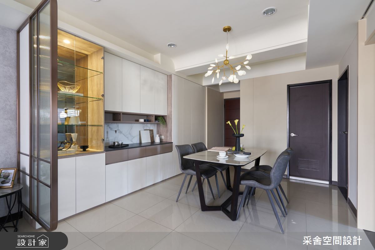來自采舍空間設計的80坪混搭風住宅案,屋主一家人共有3位大人,是一間單層毛胚屋的四房格局,設計師藉由建材以大理石、進口廚具、玻璃、烤漆鐵件、拋光磚的搭配應用,實現一家人的理想生活。