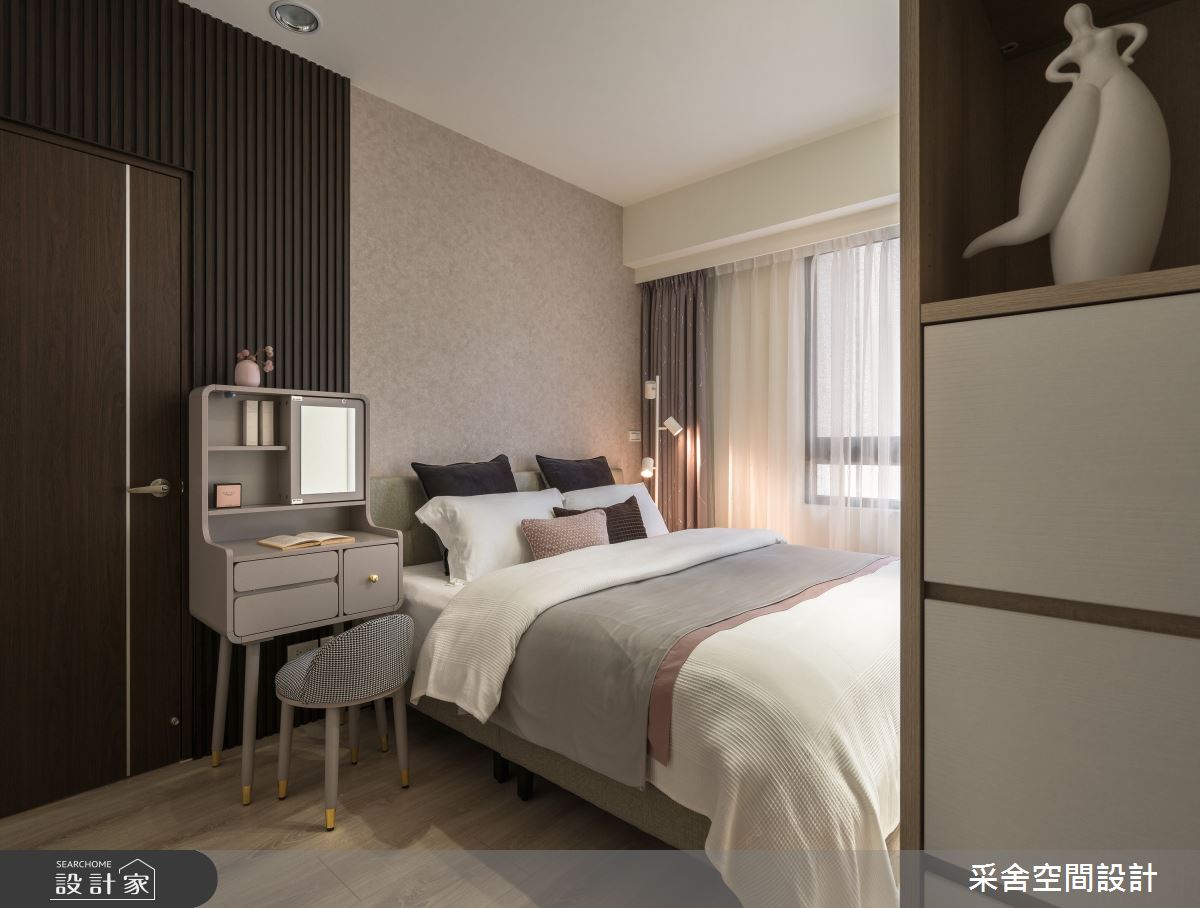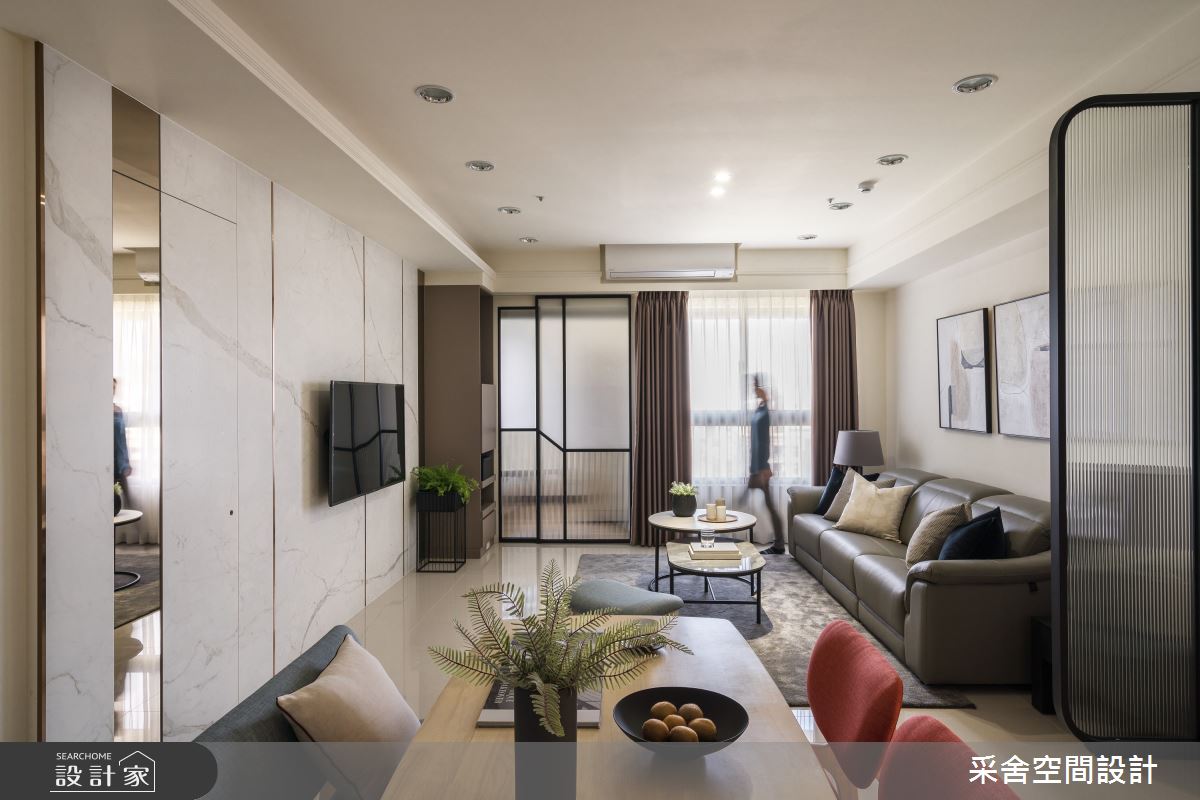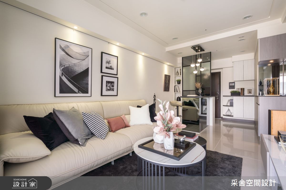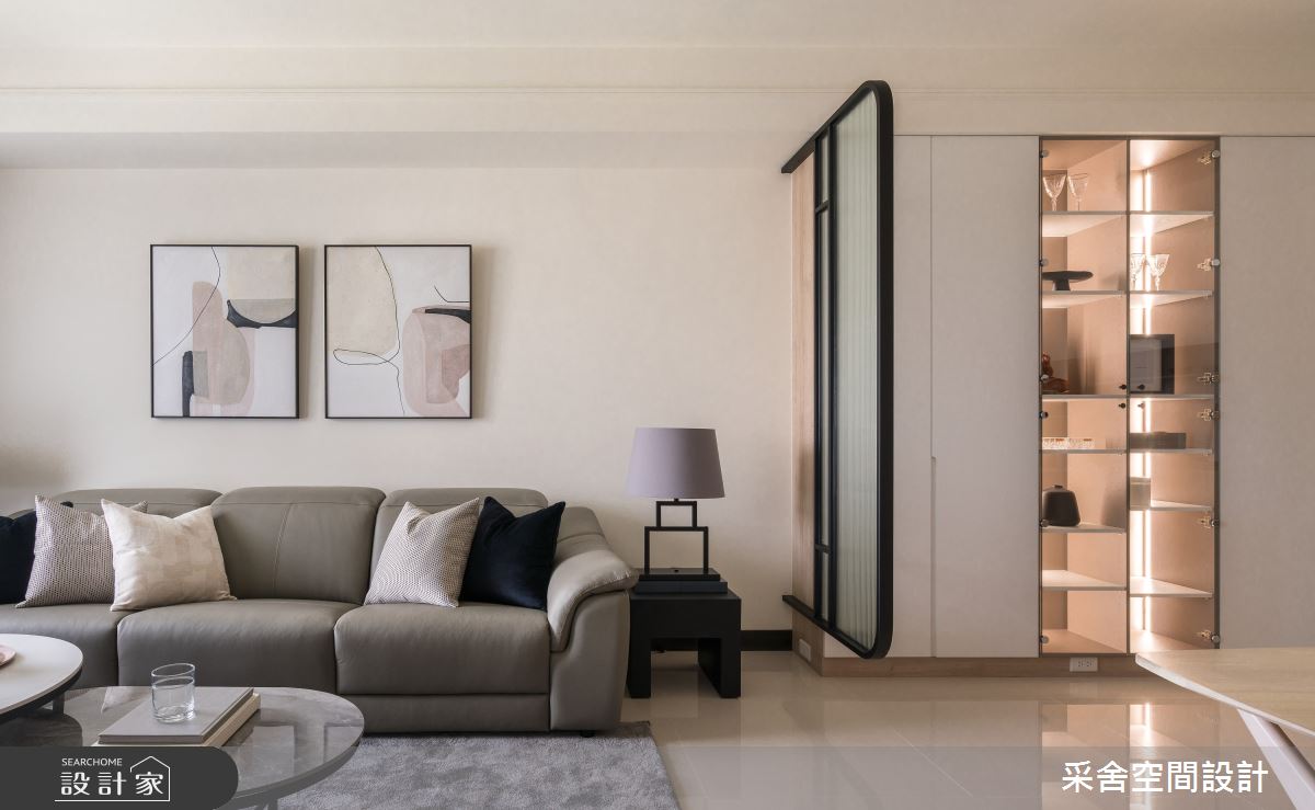 本案為采舍空間設計的31坪現代風新成屋(5年以下)設計作品,格局為單層三房的居住空間。居住成員包含2位大人。全室建材的搭配,應用鐵件、系統櫃、鍍鈦金屬條、長虹玻璃、進口壁紙、薄磚,展現溫馨的居家氛圍。