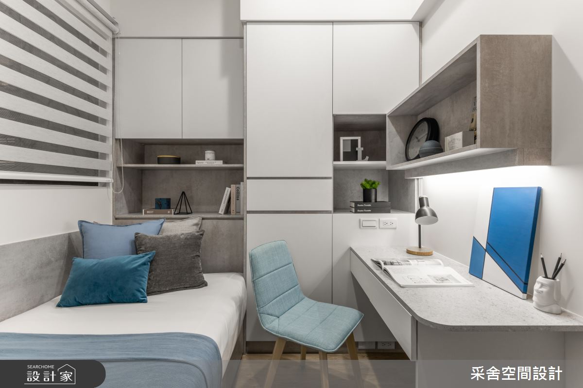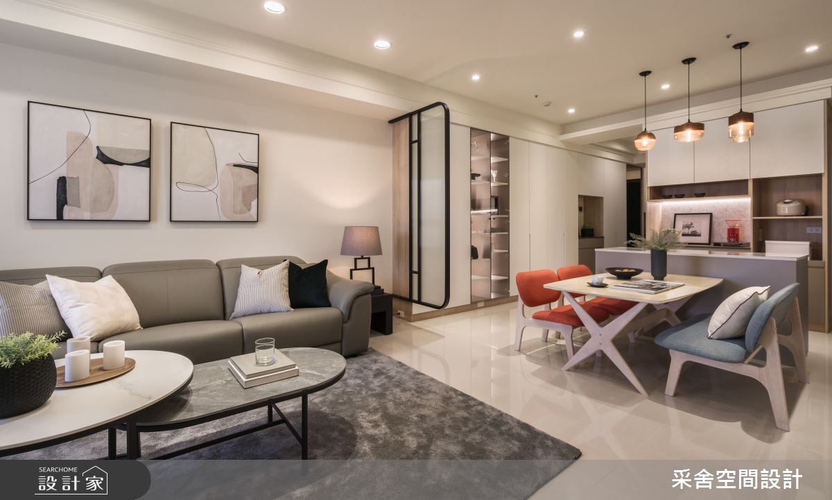 來自采舍空間設計的22坪現代風住宅案,屋主一家人共有2位大人、2位小孩,是一間單層新成屋(5年以下)的四房格局,設計師藉由建材以油漆、鐵件、系統板材、玻璃隔間的搭配應用,實現一家人的理想生活。