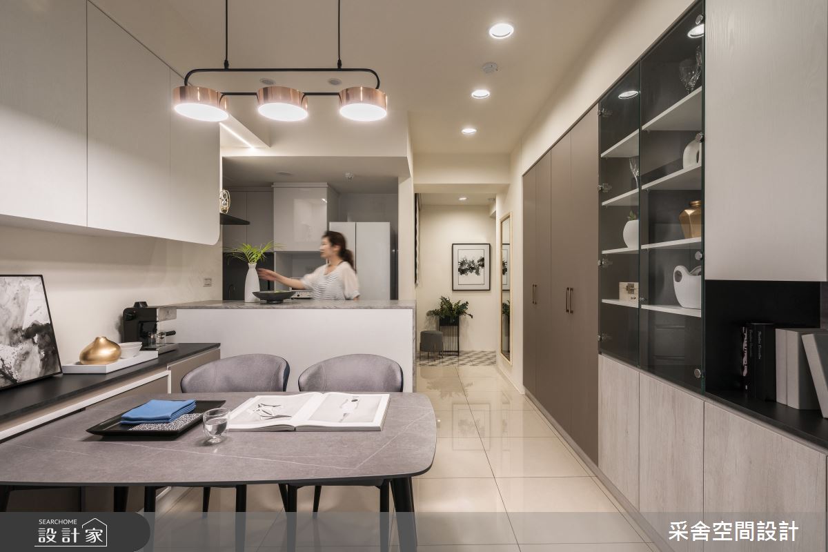 由采舍空間設計精心規劃的30坪三房住宅空間,家庭成員一共有2位大人。因應屋主需求,設計師運用現代風作為主軸,搭配油漆、超耐磨木地板、鐵件、鍍鈦金屬、長虹玻璃、進口薄板大磚,打造全家人的夢想家居。