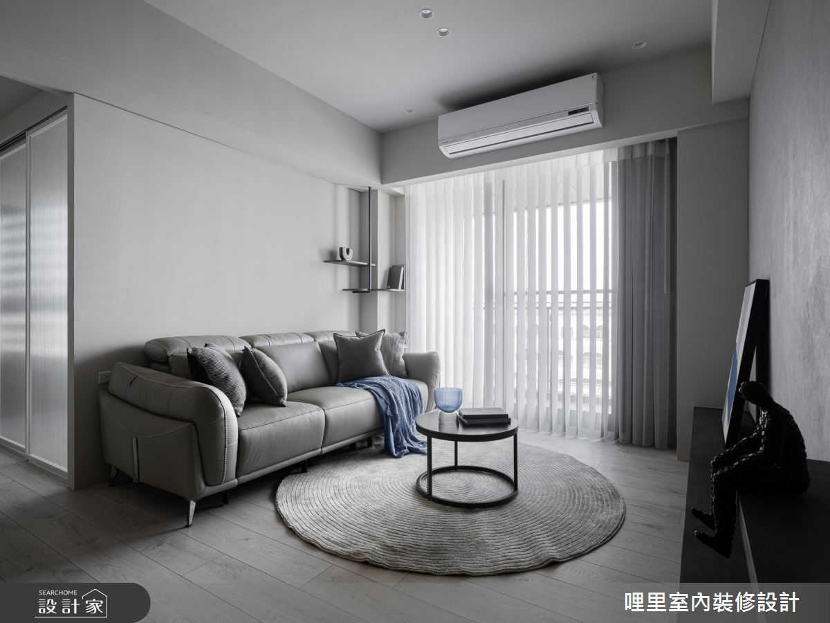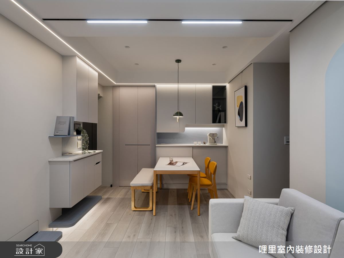 本案為哩里室內裝修設計的21坪現代風新成屋(5年以下)設計作品,格局為單層一房的居住空間。居住成員包含1位大人。全室建材的搭配,應用調色漆、鋁框門、系統櫃、穿透簾、風琴簾、石英石、烤漆玻璃、灰玻、磨砂玻璃,展現溫馨的居家氛圍。