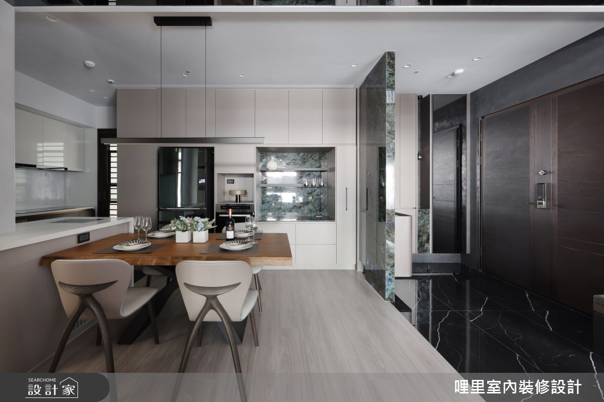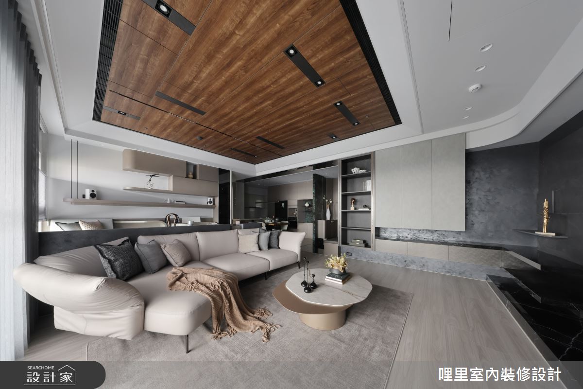 由哩里室內裝修設計精心規劃的72坪五房住宅空間。因應屋主需求,設計師運用現代風作為主軸,搭配油漆、乳膠漆、灰鏡、茶玻、烤玻、鍍鈦金屬、系統板材、藝術塗料,打造全家人的夢想家居。