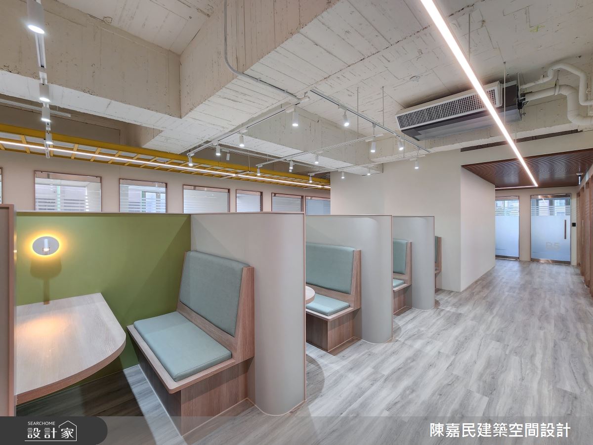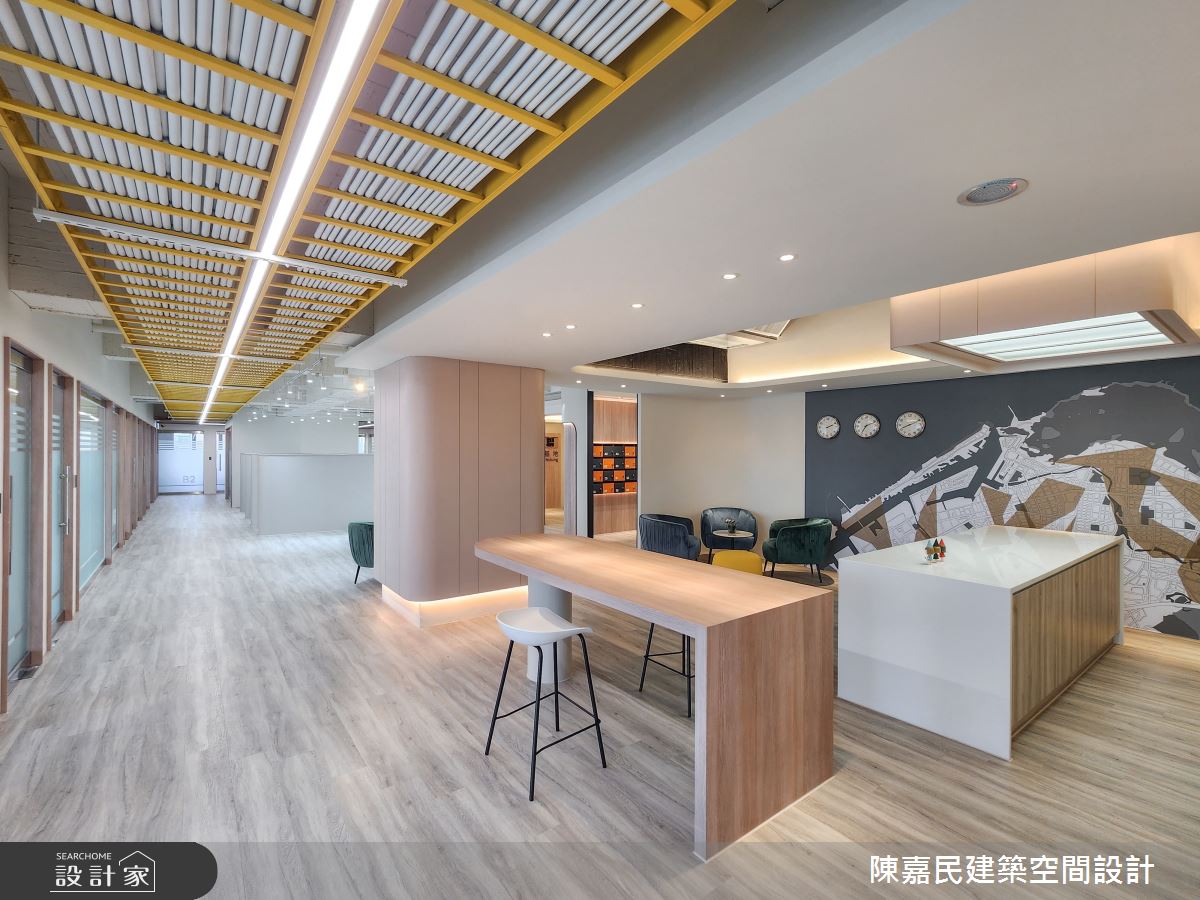 由陳嘉民建築空間設計精心規劃的150坪商業空間,因應業主需求,設計師運用混搭風作為主軸,搭配建材大圖輸出、水泥漆、超耐磨木地板、木地板、鐵件、木作貼皮、烤漆、系統板材、人造石、噴漆、噴砂玻璃,打造精緻品味的空間氛圍。