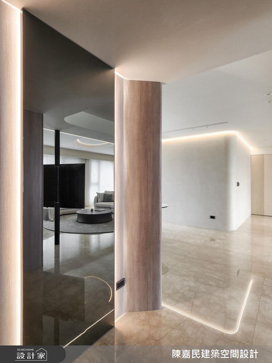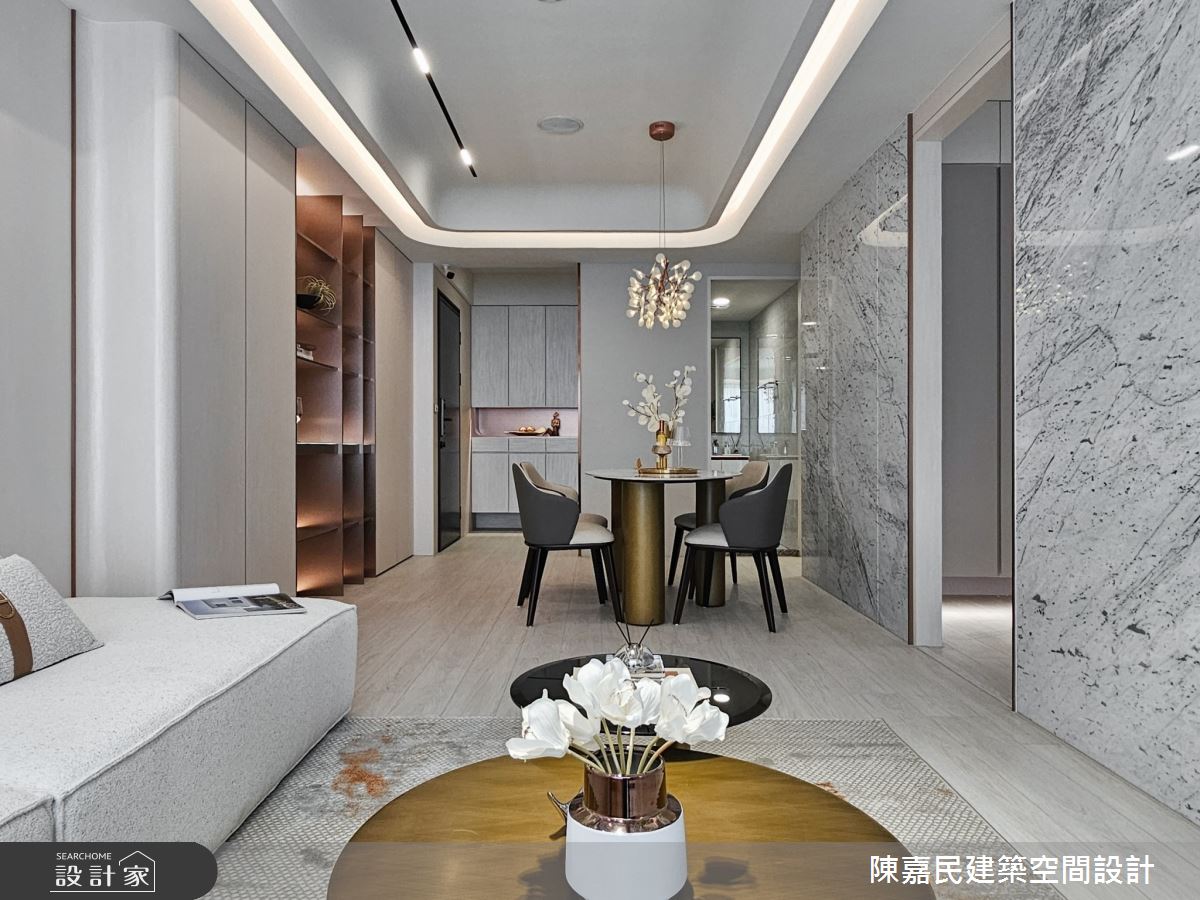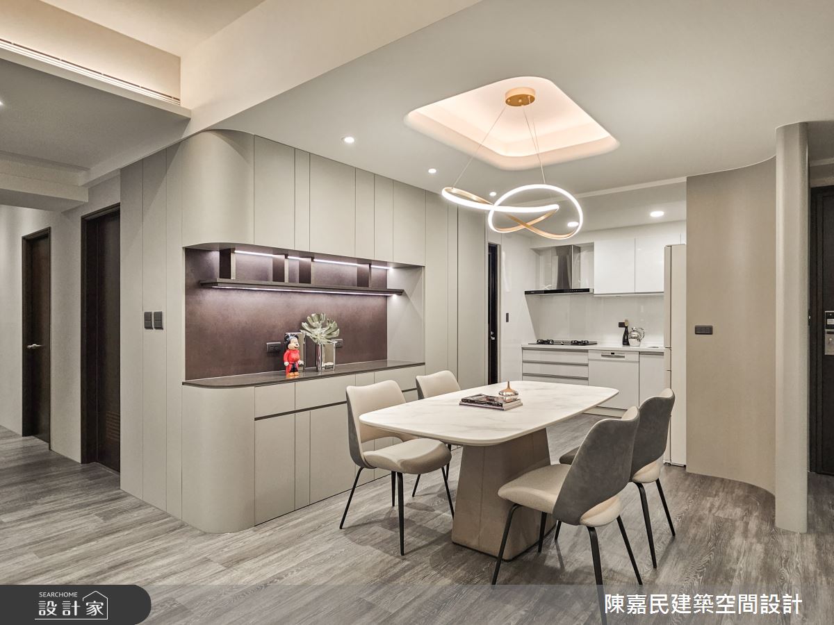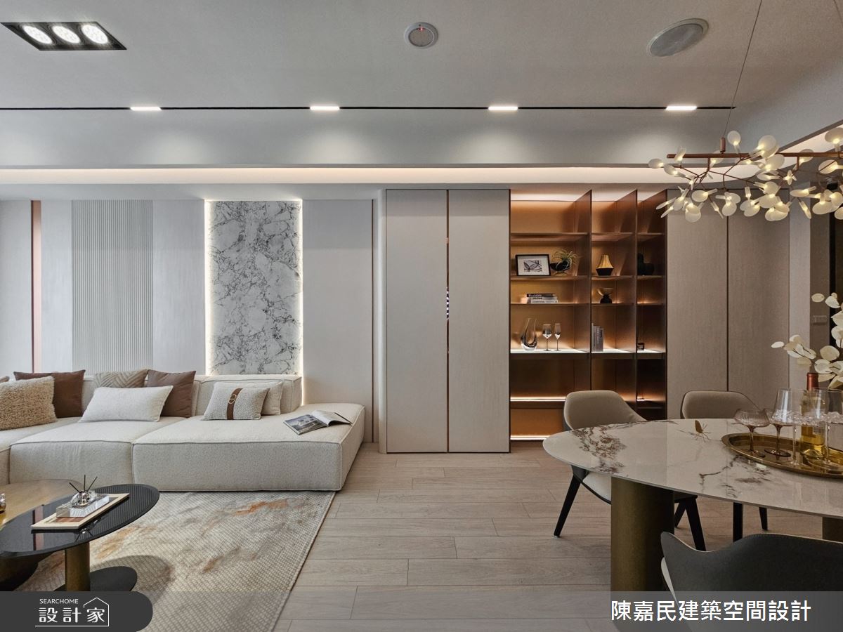 由陳嘉民建築空間設計精心規劃的45坪四房住宅空間,家庭成員一共有2位大人。因應屋主需求,設計師運用簡約風作為主軸,搭配壁紙、木地板、烤漆、系統板材、人造石、石材、噴漆、塗裝板,打造全家人的夢想家居。