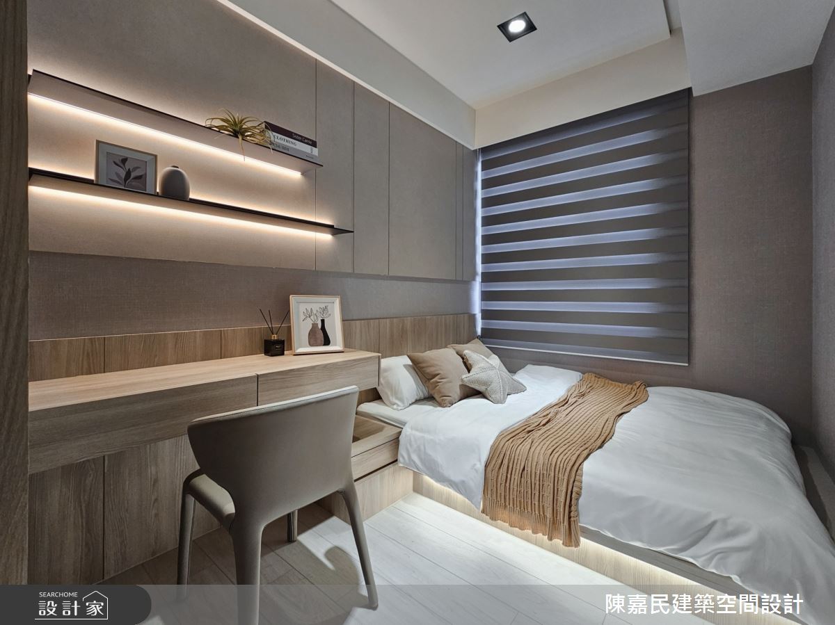 由陳嘉民建築空間設計精心規劃的25坪三房住宅空間,家庭成員一共有2位大人。因應屋主需求,設計師運用簡約風作為主軸,搭配油漆、壁紙、超耐磨木地板、烤漆、人造石、石材、噴漆、灰玻、調光簾,打造全家人的夢想家居。