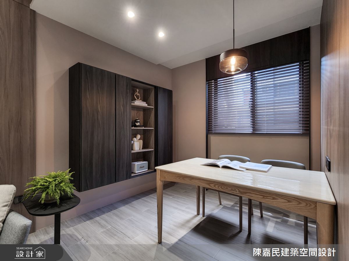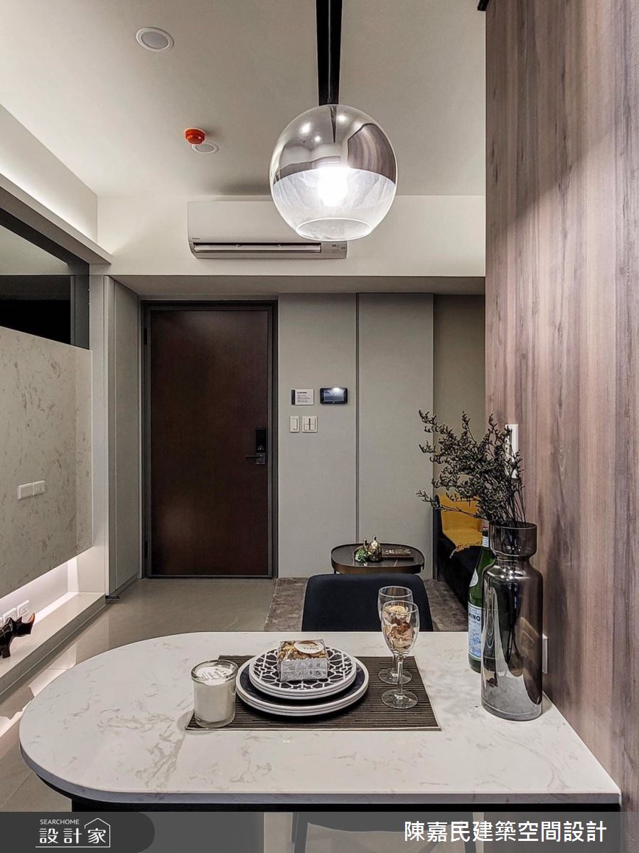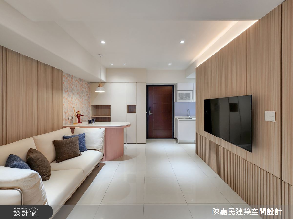 由陳嘉民建築空間設計精心規劃的14.8坪一房住宅空間,家庭成員一共有2位大人。因應屋主需求,設計師運用簡約風作為主軸,搭配油漆、壁紙、鋼刷木皮、大理石、噴漆、風琴簾,打造全家人的夢想家居。