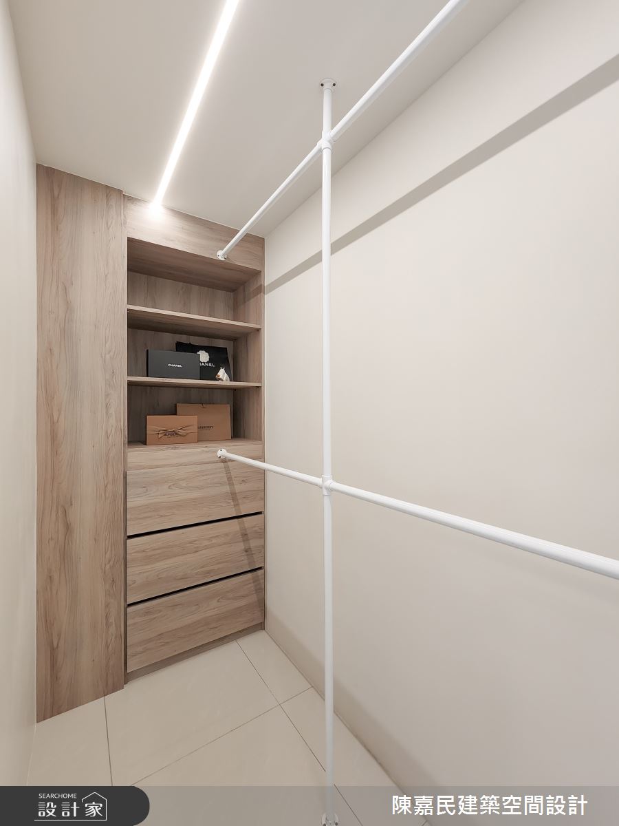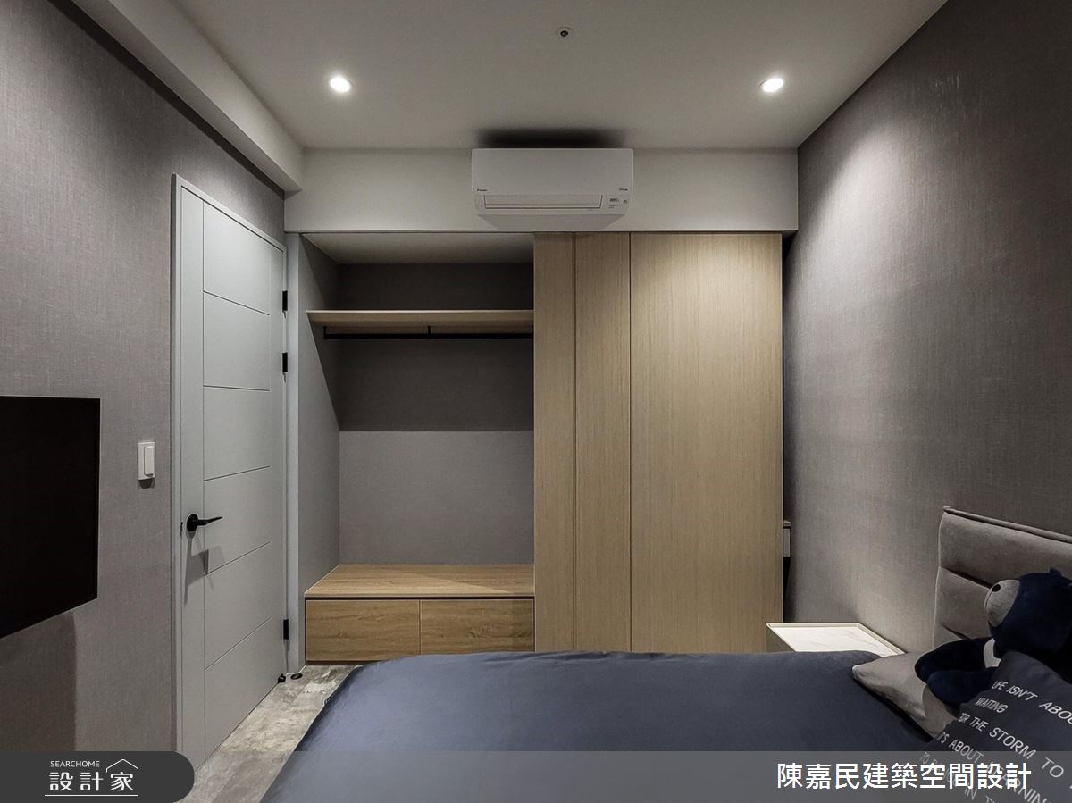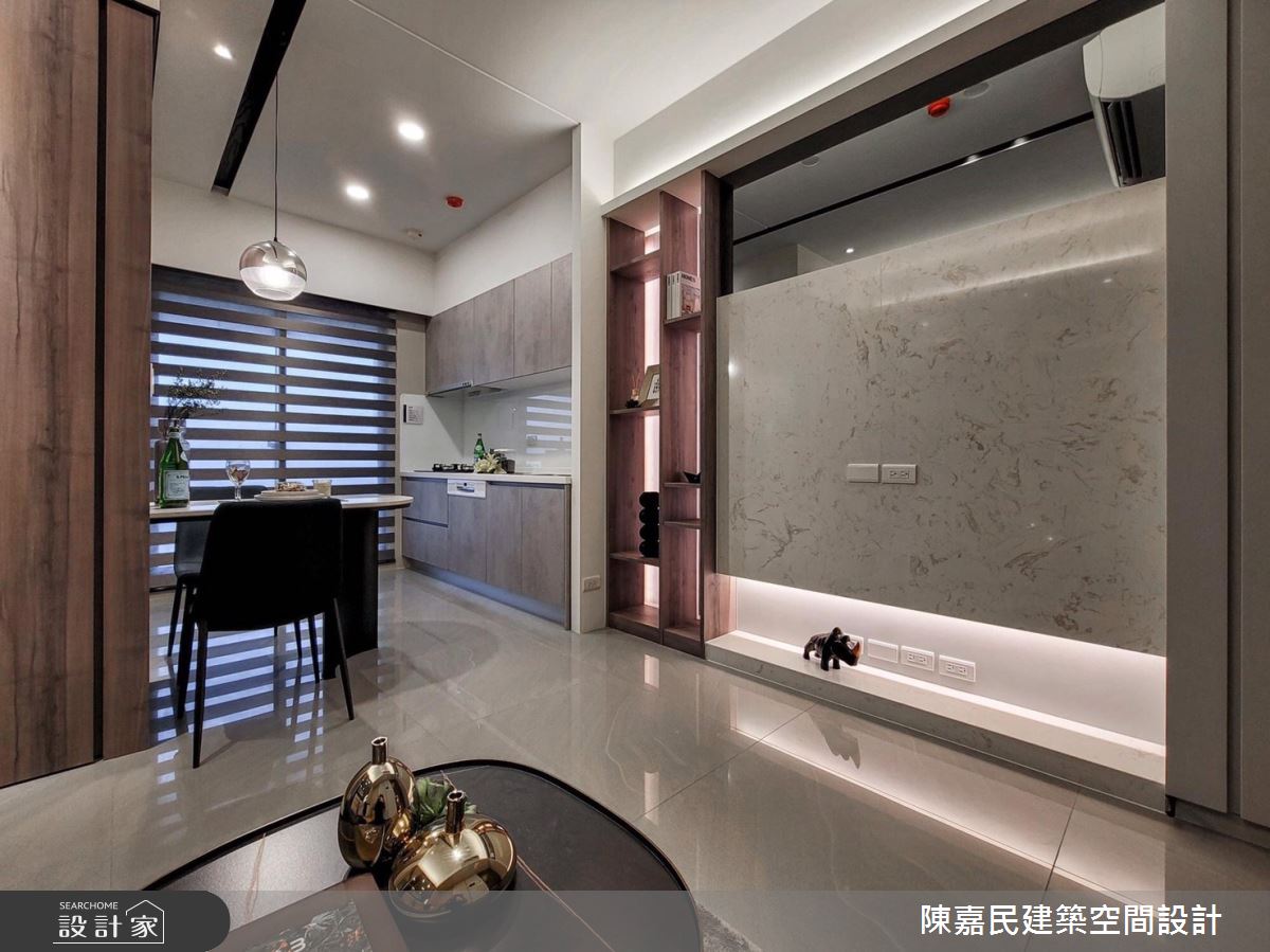 由陳嘉民建築空間設計精心規劃的14.8坪一房住宅空間,家庭成員一共有2位大人。因應屋主需求,設計師運用簡約風作為主軸,搭配油漆、壁紙、鋼刷木皮、大理石、噴漆、風琴簾,打造全家人的夢想家居。