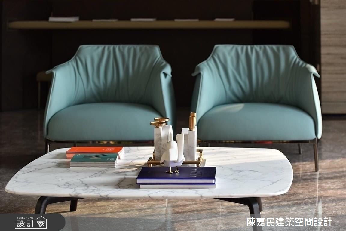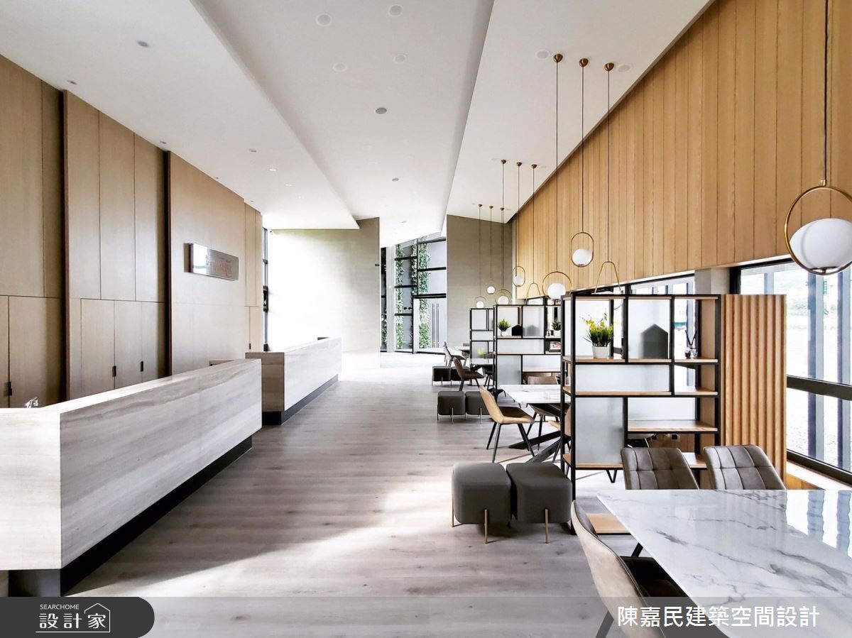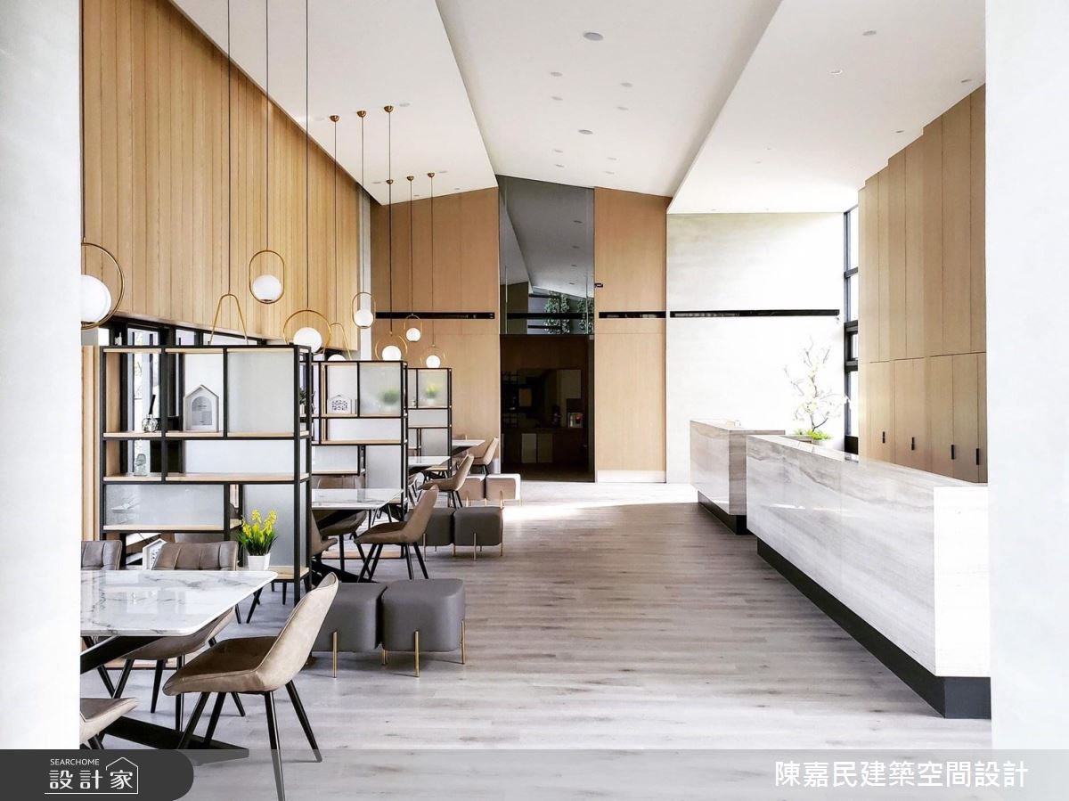 陳嘉民建築空間設計以石英磚/拋光石英磚、烤玻、木作貼皮、大理石、噴漆的搭配應用,呈現混搭風的風格氣息,將此間120坪新成屋(5年以下)優雅詮釋成舒適愜意的商業空間。