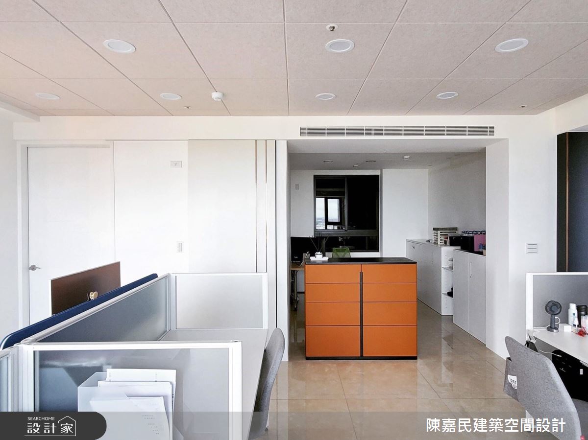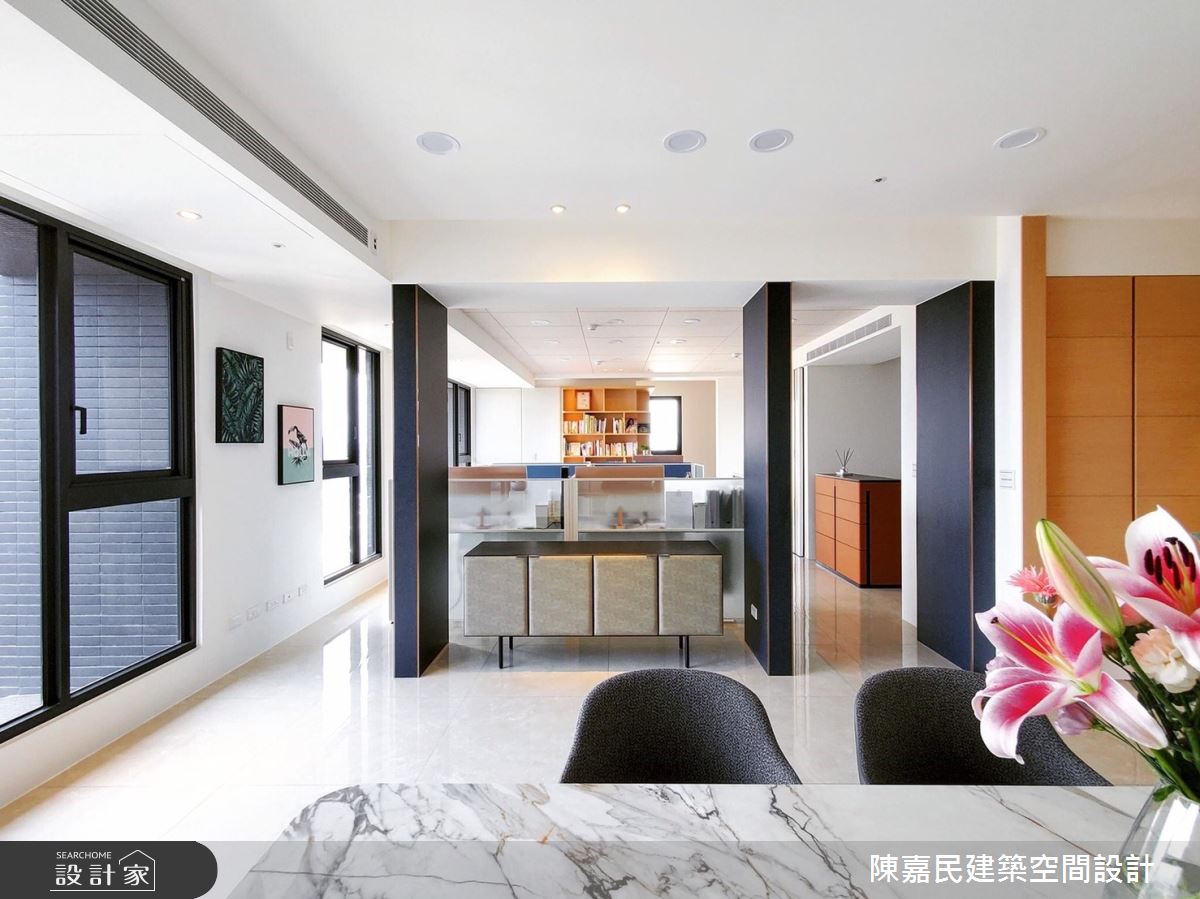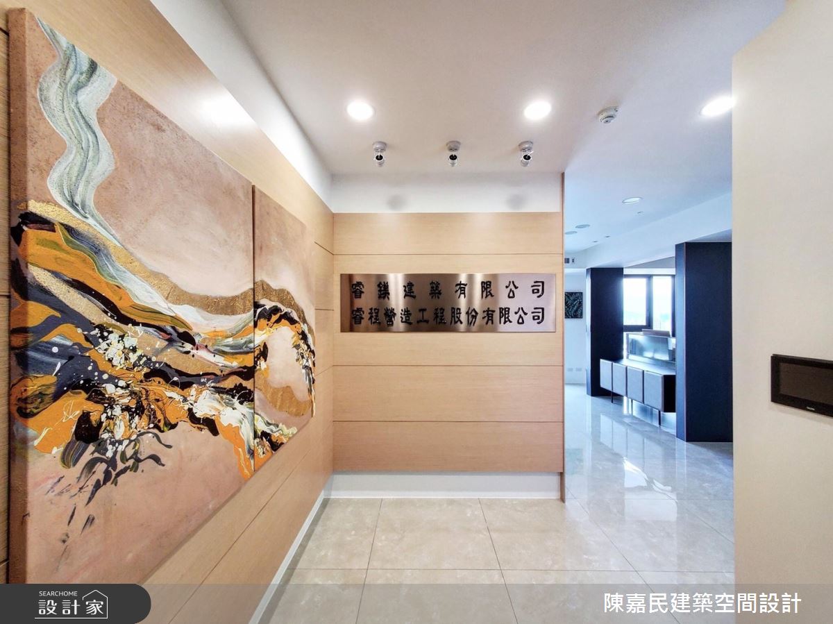 陳嘉民建築空間設計以石英磚/拋光石英磚、烤玻、木作貼皮、大理石、噴漆的搭配應用,呈現混搭風的風格氣息,將此間120坪新成屋(5年以下)優雅詮釋成舒適愜意的商業空間。